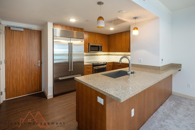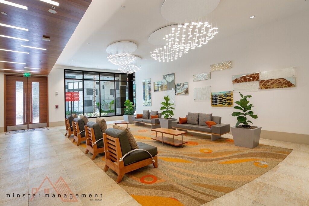 Excellent location near Salt. With 24/7 security and all the amenities, including fitness center, pool, Jacuzzi, meeting/recreation rooms, BBQ stations, outdoor seating area, EV charge stations..... Conveniently located in Salt, near restaurants, shops, Down to Earth, HMart, UPS...... This immaculate unit offers great view from Punchbowl to downtown harbor & beautiful sunset. Walk in closet, open kitchen, full size washer/dryer and total block out auto control blinds in the bedroom for late sleeper's comfort. Bedroom has a queen size bed & wall mount TV with speaker in excellent condition and can stay. Available now. No pets, no smoking of any kind. Non refundable $25 application fee & current credit report to apply. Long term lease prefer. Contact agent for showing Pan Pacific Realty, LLC