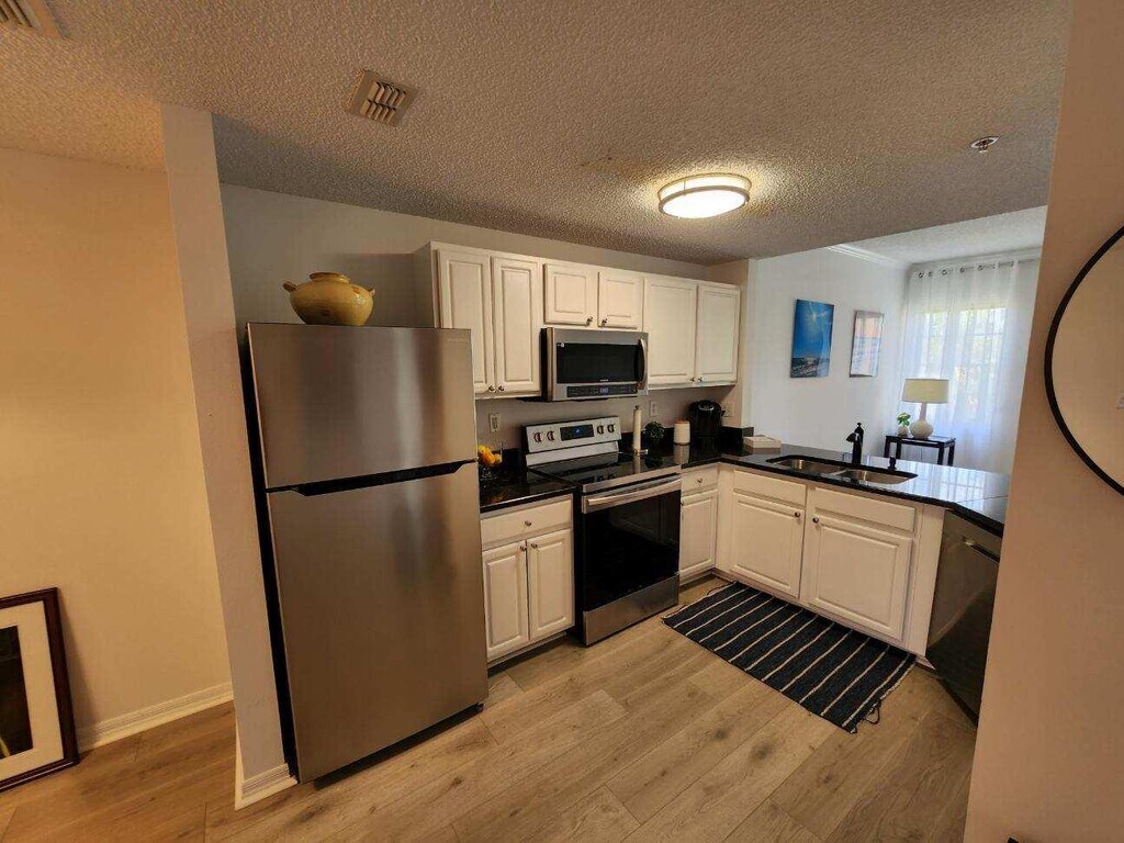 Newly renovated (2025) luxury condo located in Las Palmas, a gated community within walking distance of the UTC mall! The community is a 10 minute walk from over 100+ restaurants and shops with a private gate access to Benderson Park featuring weekly events. Only 15 min drive to Sarasota Bradenton Airport, 25 min to Siesta key beach area and within 15 minutes of anywhere in Sarasota or Bradenton and located a mile from I75 connecting you to the rest of the Tampa Bay area. Enjoy The View of the weekend fireworks from Benderson Park right from your own personal balcony. This unit is one of a kind and won't last long! Call for any questions or special requests, I look forward to speaking with you!