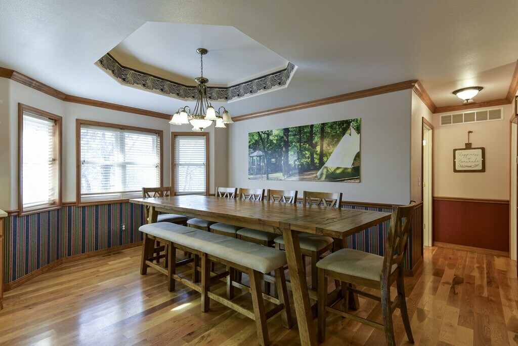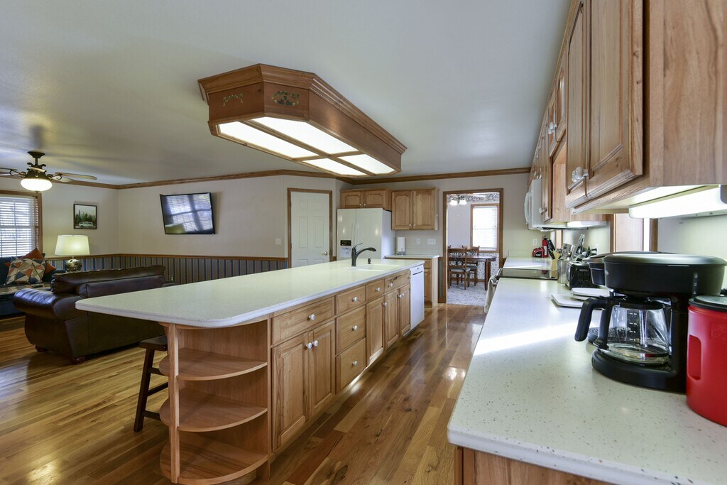Beautiful 2 story 5 BR 2 BA Custom built home located in Tallpines Campground close to Silver Dollar City. This home has a huge kitchen with large bar/island. Along with the 5 bedrooms and 2 full baths there is a nice gameroom with video games and a pool table. There is also a home theater room, and a mud room. Very open floorplan (great for entertaining). The house comes 100% furnished inclding washer & dryer. Rental includes water, sewer, trash service and wi-fi. Electricity is not included. Tall Pines is rated in the top 3% of all RV parks in America and we are proud of that! This spacious campground is located in the Ozark mountains just around the corner from Silver Dollar City. Being located on State Highway 265, you have the convenience of a quick trip to all of Branson's amenities and attractions. When you're at the campground, you'll feel the seclusion you desire while camping. Tall Pines offers a variety of camping options, from 50 Amp hook-ups to pull-thru spots, along with cabins, and tent spaces.