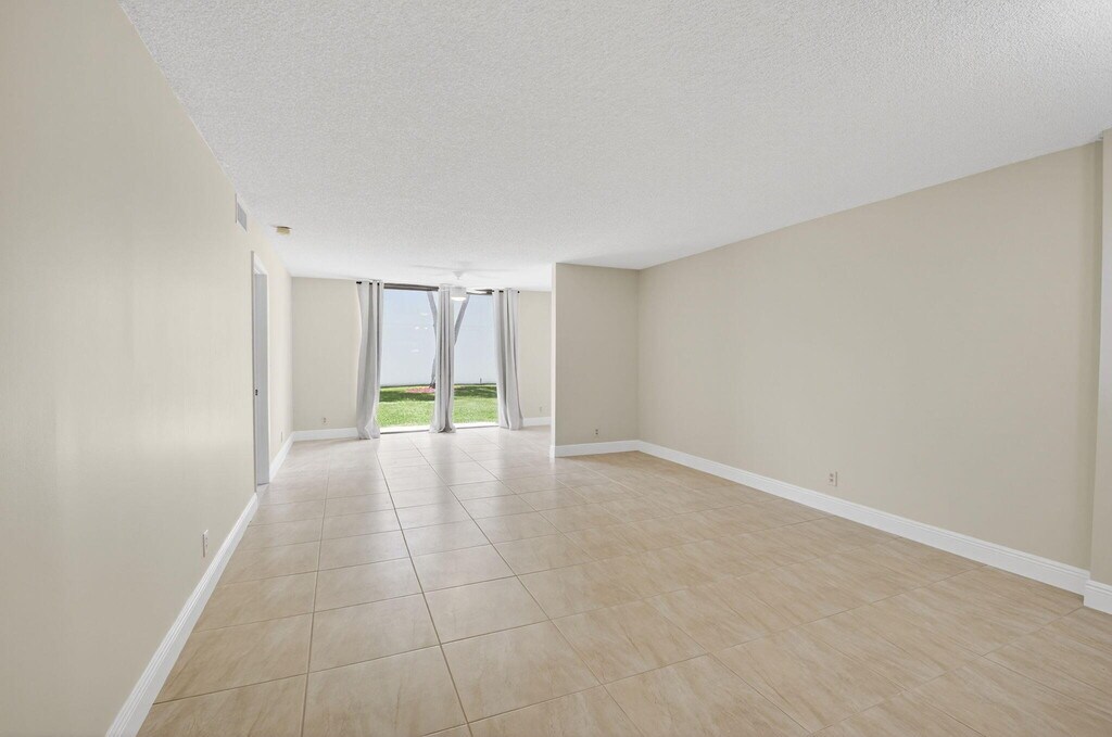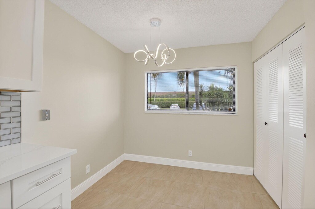 Cheerful,newly painted and spotless ground-floor unit with tranquil garden view ready fr you to move in.. This unit may be rented furnished or unfurnished. Spacious 1348 square foot layout features tile in every room. Comfortable eat-in kitchen with granite counters and wood cabinets,newer appliances and pass-through to the dining area. Primary bedroom offers a large walk-in closet plus an en-suite bath with updated vanity and toilet and separate and updated shower. Guest bath has updated vanity and a tub-shower. 3 wall mounted smart TVs are included. The enclosed,screened patio with a garden view is fully protected with newly installed hurricane accordion shutters,as are all of the other windows. Laundry room inside. Brand new front door specially made for hurricane protection. New roof,new elevator. All assessments have been paid by seller. The oversized laundry room holds full-sized and newer washer and dryer,with room for additional storage. Lakes of Delray is a 24 hour guard gated 55+ community known for its exciting lifestyle. You'll find a resort sized heated pool,community room,card rooms,billiard room,gym,tennis courts,pickleball courts. plus many clubs,classes,shows,dances and activities. There is even courtesy bus service. MLS ID R11147828