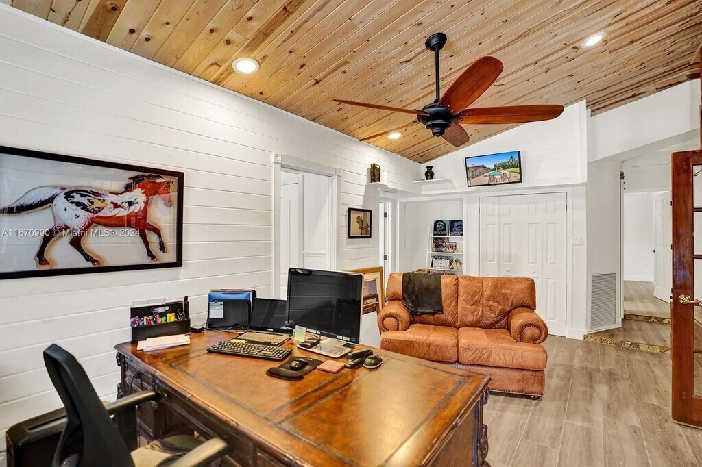 Now available this beautiful get away home the perfect place to relax and escape reality. Very spacious open lay out 3 bedrooms plus a bonus room, 2.5 bathrooms with a beautiful pool and jacuzzi. Enjoy a fully screened in patio and outdoor BBQ and Hibachi flat top great for get togethers OR family time. New metal roof fully remodeled with impact windows and doors. BTW the 3 car garage (separate detached) has been converted into a in in laws quarter with a private yard and a one car garage parking space. NO HOA VERY PRIVATE HOME MINUTES FROM THE HARD ROCK GUTIAR AND BEACHES. CALL TODAY FOR A PRIVATE TOUR