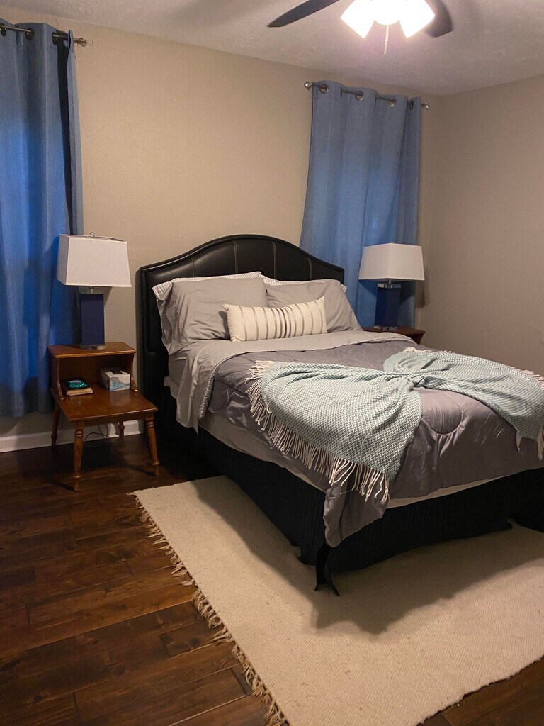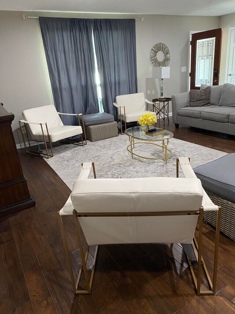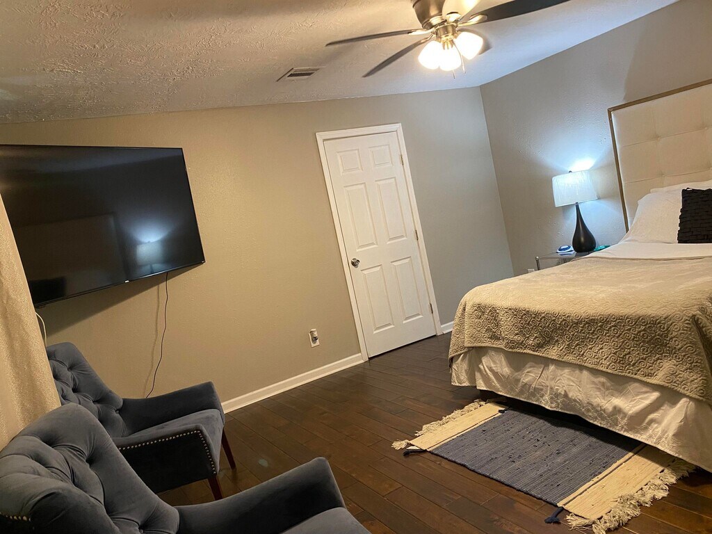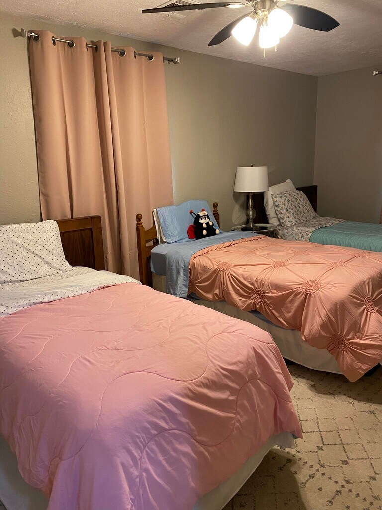 Welcome to our spacious 4-bedroom home located on a peaceful cul-de-sac in the charming city of Humble! Perfectly situated just a 17-minute drive from IAH airport and a 12-minute drive from Deerbrook Mall, our property offers convenience and comfort for all guests. As you enter, you'll be greeted by a living room with high ceilings and a cozy fireplace, creating a warm and inviting atmosphere. The kitchen boasts stainless steel appliances and ample cabinet space, making meal preparation a breeze. The master bedroom is generously sized and features a balcony, providing a peaceful retreat. Throughout the house, you'll find ceramic tile flooring, adding a touch of elegance to the space. Our two-story house spans 1,975 square feet and includes a well-equipped kitchen with a dishwasher, refrigerator, stove, washer, and dryer. There are also two and a half bathrooms for your convenience. Additionally, we offer a garage door opener and extra driveway space to accommodate boats, RVs, or extra vehicles. Rest assured, you will have complete access to the entire property, ensuring privacy and ample space for you and your fellow guests. Please note that there are stairs to access the bedrooms, so we kindly recommend parents and guardians to supervise children to prevent any accidents. Enjoy the tranquility of our great neighborhood, with no neighbors to the rear. For those interested in exploring the area, there are several notable points of interest nearby. San Jacinto College, University of Houston Downtown, and Lone Star College are all within driving distance. Shopping enthusiasts will appreciate the proximity to various shopping centers, such as Timber Forest Village and Atascocita Shopping Center. Outdoor enthusiasts can visit Jesse H. Jones Park & Nature Center and Sheldon Lake State Park for some recreational activities. Military bases including Lyndon B Johnson Space Center can be reached within a reasonable time frame. For those traveling by air, Houston George Bush Intercontinental, Ellington Field, and William P. Hobby airports are all accessible within a convenient drive. Before booking, we kindly ask guests to review and agree to our House Rules and sign the rental agreement. Please note that gatherings or parties are strictly prohibited, and only booked guests are allowed on-site unless prior approval and additional fees have been arranged. A refundable $500 security deposit is required for each booking, separate from the booking payment, which demonstrates your commitment to adhere to the House Rules. Well-behaved pets are welcome for an additional fee. We strive to provide extra amenities and ensure your comfort during your stay. You'll find plenty of extra pillows, blankets, and even self-inflating air mattresses. Additionally, we offer cribs, walkers, as well as extra lighting options throughout the house. If you have any specific needs, please let us know in advance, and we will do our best to accommodate you. We look forward to hosting you in our lovely home!