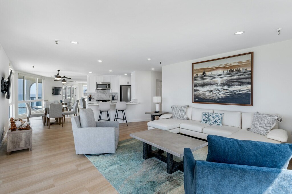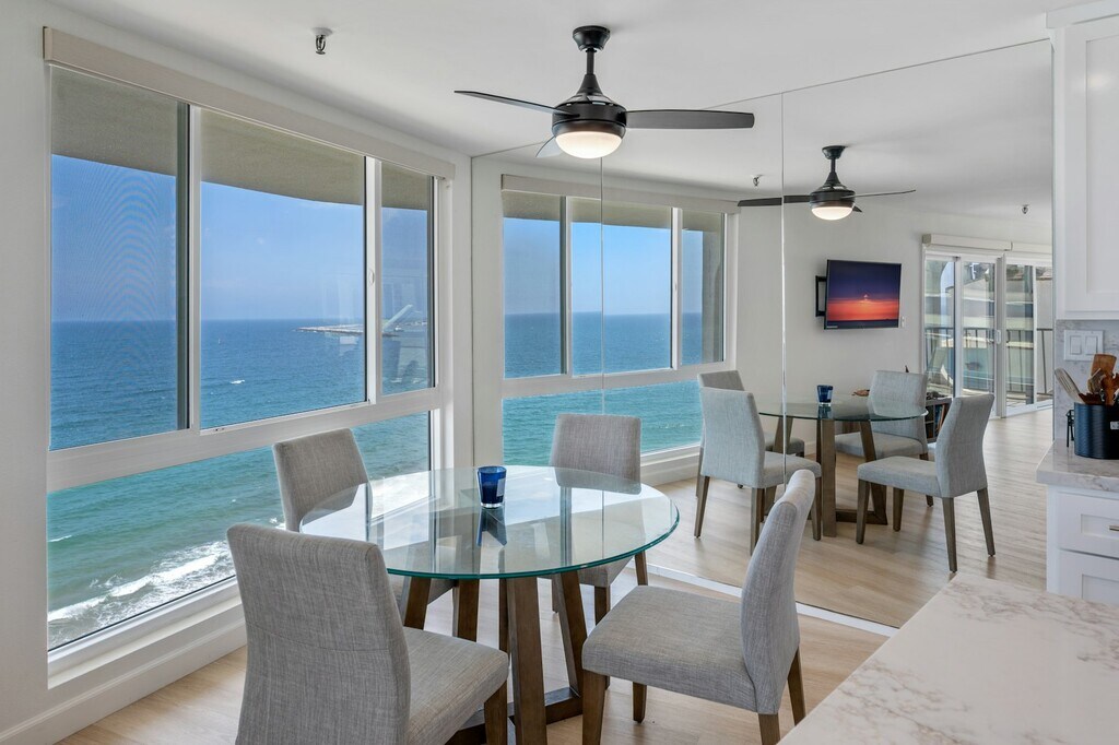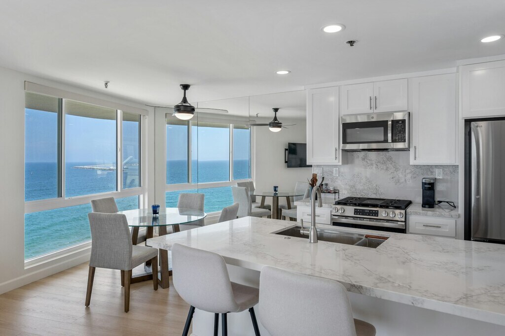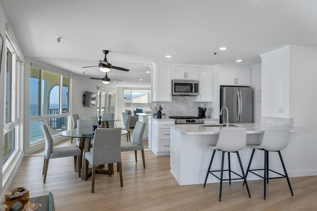 Fully furnished and recently remodeled panoramic ocean view and beachfront property with 180-degree balcony view from Palos Verdes to Santa Monica Mountains. Enjoy full ocean views from every window. You can hear the waves from your living room and kitchen. Feel the ocean air! You literally can't get closer proximity to the ocean. Situated on the third floor of the building, one-bedroom condo feels massive when your fourth wall is the great Pacific Ocean. Updated kitchen and bathroom. Covered, secured parking for 1 car. Community Jacuzzi and laundry. Spectacular location in the South Bay. Short walk to the Redondo Beach Pier and The Village restaurants, fish markets & farmer's market. Year-round beach living or your incredible getaway. To Live, Live by the Sea. Please inquire about availability. Minimum of 30 nights.