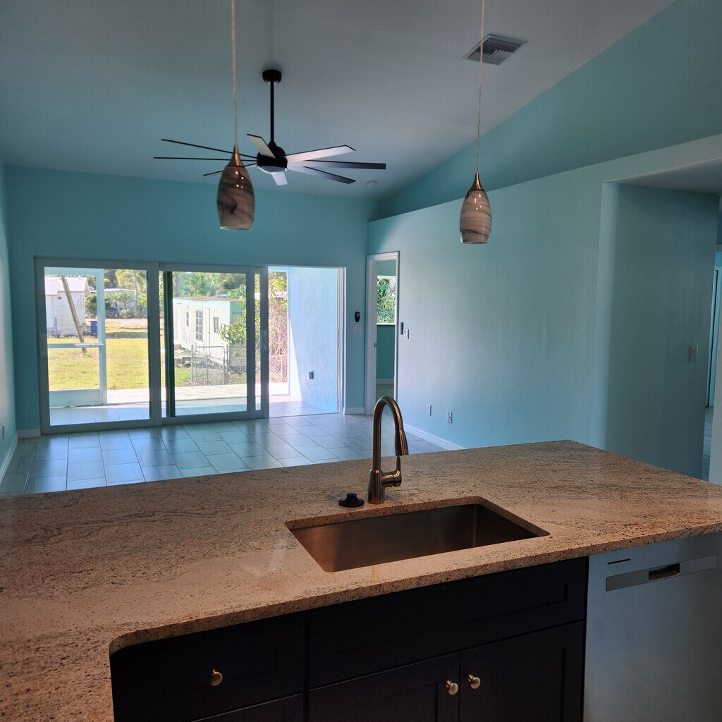 .. Island life.. This 2025 built NEVER lived in spacious 3-bedroom, 2-bathroom duplex is perfectly nestled in a prime location very near grocery stores, fresh fish and seafood markets, tropical fruit stands, banks, parks, auto service, gas stations, sport and meal fishing locations, veterinary clinics, houses of worship, many waterfront restaurants, adult beverage servicing and sales establishments, award winning sunsets, and across the street is a private community park with a boat and kayak launch, and much more. Points of interest: Two minute walk, To private community park-and boat launch Sixty minute drive, 33.7 miles to Regional Southwest Airport Forty six minute drive, 27.6 miles to north Airport Forty one minute drive, 18.1 miles to Cape Coral yacht club public beach Sixty minute drive, 28.2 miles to Ft. Myers beach Four minute drive, 1.7 miles drive to grocery supermarket Eight minute drive , 4.4 miles to marina for boat rental and ferry to Cabbage Key Eleven minute drive, 6.7 miles to fishing pier Easy short trip to several banks, drugstores, restaurants, retail stores and more Three minute drive, 1.1 miles to Pine Island Community pool - Philips Community park Lets get back to this housing description, With an expansive living space spanning 1782 square feet, (1225 air conditioned) this fully tiled home offers an oasis of comfort for you and your family to retreat to after a long day of work or school or just fun in the Southwest Florida sun. With a taller than normal ten foot ceiling in the living room and kitchen, and the generously-sized bedrooms provide ample room for rest and rejuvenate, allowing everyone in the family to have their own sanctuary. Additionally, the versatile bonus room/ study/ office with pocket doors adds a touch of versatility to the property, making it an ideal spot for a splendid dining room to host gatherings or a productive home office where inspiration flourishes. With the use of the hurricane rated energy efficient windows and a safer hurricane resistant type of insulated concrete forms construction for cooling utility bills are 33% lower than most other common new construction styles, providing an easier utility budget. The living room, rear lanai and all bedrooms have ceiling fans with light kits. The laundry machine hookup area is located inside the main hallway near the bedrooms, Not in the garage. Never worry about storage again, as this duplex boasts ample closet space to accommodate all your belongings effortlessly. Plus, the two-vehicle hurricane rated insulated attached garage with a internet enabled vehicle door remote access using your phone ensures that your vehicles and other personal items are well-protected and easily accessible whenever you need them. The lighted driveway accommodates space for two guests to park off of the street. Prepare your culinary masterpieces in the well-designed, spacious kitchen with large granite countertops, that is fully equipped with clean new refrigerator, range-stove-oven, over the range microwave-oven, and a dishwasher to handle simple family dinners or extravagant holiday feasts. The heart of the home, the kitchen, promises to be the place where cherished memories are made and family bonds are strengthened. A rear paver patio area off of the rear screened lanai with a privacy section provides more exterior outside enjoyment. This immaculate rental home is a true gem, providing a harmonious blend of modern convenience and natural beauty. Don't miss this rare opportunity to call this duplex your home and embrace a lifestyle defined by comfort, convenience, and captivating natural beauty. Seize the chance to create cherished memories with your loved ones in this haven of tranquility. The lawn mowing service is handled, leaving time to enjoy other activities. Tenants pay for electric and water bills. Six month term-possibly renewable Application and $45.00 application fee for every occupant eighteen years of age & older. $1900.00 first month $1900.00 Security deposit $500.00 non refundable non human guest fee, Plus $ 25.00 per non human guest per month TWO maximum. 600 credit score minimum Renters insurance is required