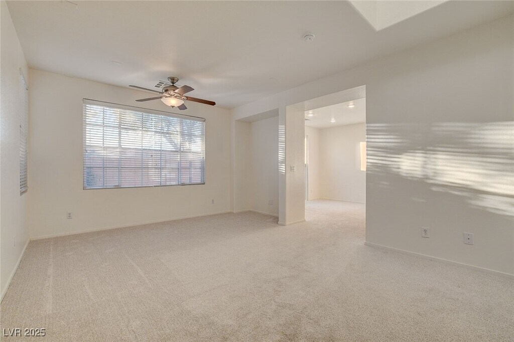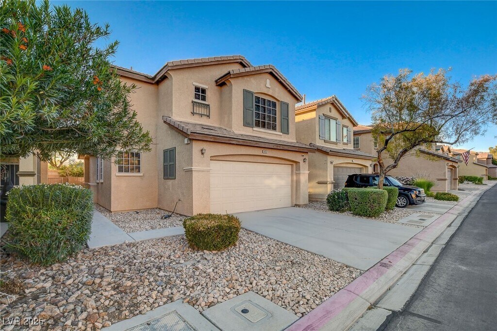 This spacious two-story home is located in a highly desirable community offering a pool, walking trails, and parks! Front yard has low-maintenance desert landscaping maintained by the HOA, backyard showcases a brick patio and durable artificial turf for easy upkeep and outdoor enjoyment. Inside is freshly painted and has new carpet throughout. Kitchen comes fully equipped with all appliances, BRAND NEW granite countertops, and a walk-in pantry. Energy-efficient solar screens and low-E windows to help keep utility costs low. Floor plan offers 3 bedrooms and 2.5 bathrooms, with a generous primary suite privately separated from the secondary bedrooms. The primary bath features dual sinks, a separate tub and shower, and two closets — including a large walk-in closet. Conveniently located near 215 freeway access, dining, and shopping, this beautiful home combines comfort, efficiency, and an ideal location — move-in ready and waiting for you! **Owner will be installing new washer/dryer