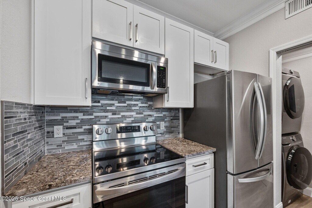 Completely updated 1 bedroom 1 bath condo facing the fountain at the Lakes at Viera East! It also comes with a 1 car garage and a storage unit. The kitchen was remodeled with new granite countertops and new cabinets. New stainless steel appliances including a Samsung washer and dryer. Luxury vinyl plank flooring throughout. The bathtub was removed and converted to a walk in shower. Impact windows! 5 and 1/2 inch crown molding and plantation shutters throughout. Heated community pool,fitness center and putting green! Conveniently located to 95,the new Whole Foods,Miller's Ale House and Ford's Garage! Viera Hospital is less than 10 minutes away. Cable and internet included in the rent. Available starting March 1st! MLS # 1069621