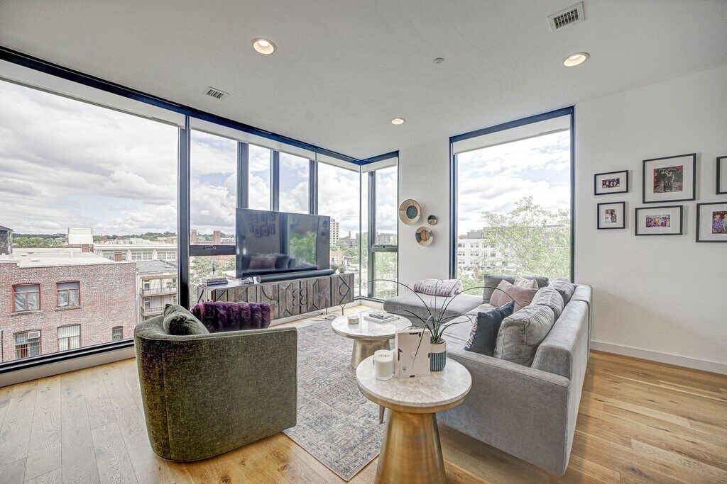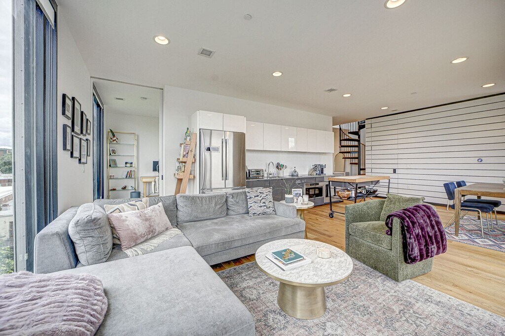 Welcome to Chapman Stables where modern luxury and thoughtful design meets exceptional urban living. Built in 2018 and perfectly nestled between the vibrant Shaw and NoMa neighborhoods. Penthouse 525 is a stunning two-level residence offering three bedrooms, three full bathrooms, and over 1,200 square feet of interior living space, plus a private terrace with sweeping city views. This top-floor unit is filled with natural light from the expansive floor-to-ceiling windows, beautifully complemented by custom shades and soaring 9+ foot ceilings. Inside, you’ll find a modern open layout with wide-plank wood flooring, sleek European cabinetry, a large granite kitchen island, and premium Bosch stainless-steel appliances—perfect for both entertaining and everyday living. A handcrafted Texan spiral staircase leads to the upper-level primary suite, which showcases spectacular views. Each bedroom includes an ensuite bathroom for ultimate comfort and privacy, while the upgraded Elfa walk-in closets maximize storage and organization. Additional conveniences include a full-size stacked washer and dryer and one assigned garage parking space. Chapman Stables offers residents an impressive collection of amenities, including a beautiful rooftop terrace with gas grills and monument views, an expansive lobby with exposed brick and modern design, a club room, and bicycle storage. On the ground floor, enjoy Republic Cantina, a popular Tex-Mex restaurant offering a convenient spot for brunch, happy hour, or dinner. The building’s location is unbeatable—just a few blocks from an array of cafes, restaurants, beer gardens, grocery stores, dog parks, and two Metro stations.