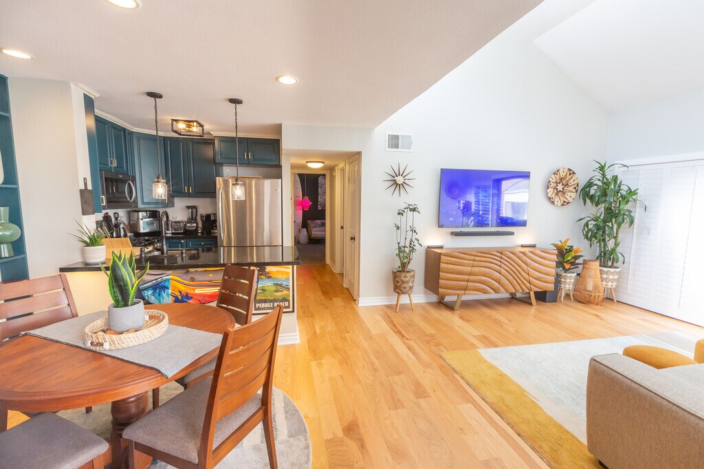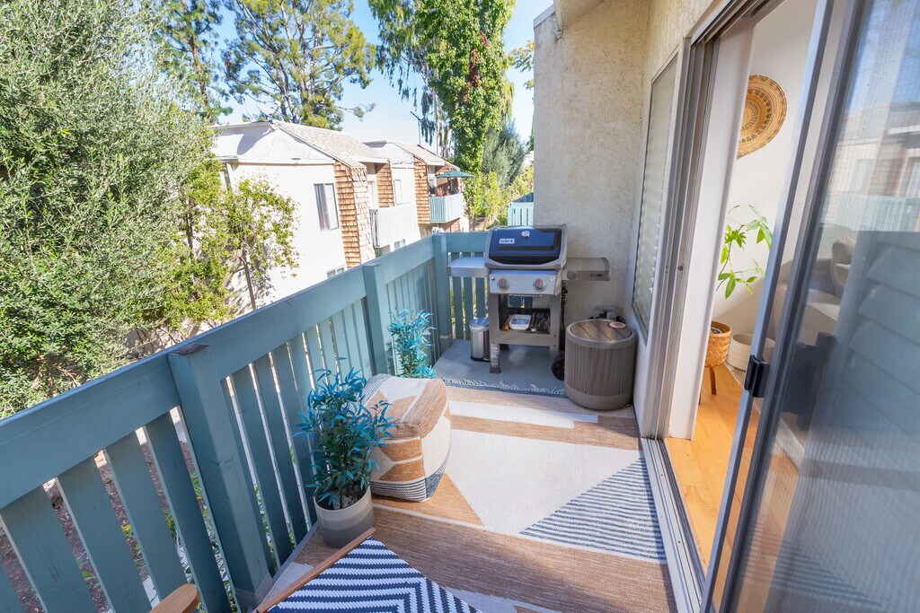 Beautifully updated 2-bedroom, 1-bath condo located in a quiet, well-maintained Tarzana community. This light-filled home features vaulted ceilings, hardwood floors, and an open living and dining area that flows seamlessly to a private balcony (with propane grill included) perfect for relaxing or entertaining. The modern kitchen offers ample cabinetry and stainless steel appliances, while both bedrooms are generously sized with great closet space. The primary suite includes an ensuite bath and a calm, private feel. Central air and heat, assigned parking, and community amenities add everyday convenience. Ideally located near Ventura Boulevard with easy access to shopping, dining, parks, and major freeways. A great fit for someone looking for a stylish, comfortable home in a prime Valley location.