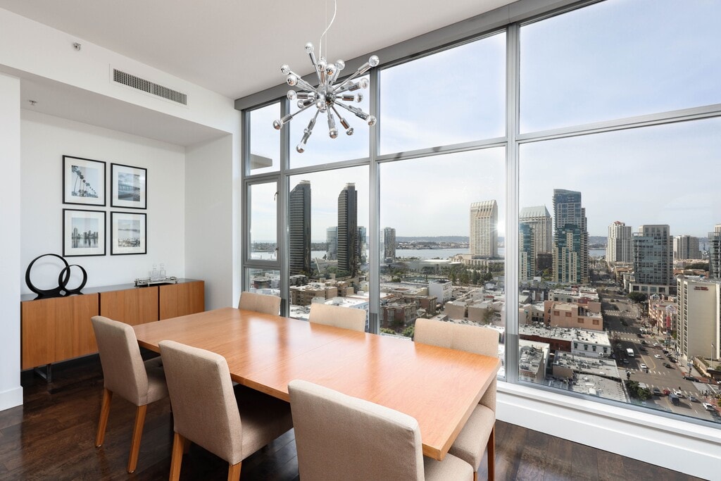 Welcome to the Alta building in Downtown San Diego! This immaculate, fully furnished 2-bed 2-bath turn-key condo is available for short-term stays of 30 days or longer, as well as year-long leases. Step inside this beautiful condo and be greeted by the spacious living area with stunning floor-to-ceiling windows that offer panoramic views of San Diego Harbor and Point Loma to the West. The kitchen is fully stocked with everything you need to cook just like you were at home, including dinnerware, cookware, and more. Enjoy high-speed WIFI internet and a smart TV in the living room with a comfortable leather sectional to relax on. Both bedrooms are prepared with comfortable beds, with a queen bed in the master bedroom and a full bed in the second bedroom. The sparkling clean bathrooms are equipped with towels, hand soap, shampoo, conditioner, and body wash in the shower. Laundry is made easy with the in-unit washing machine and dryer. Walk out your door to the heart of Downtown San Diego, with all its restaurants, cafes, and entertainment options just steps away. The unit also comes with a parking space for your convenience. The building amenities include a 50' indoor/outdoor pool, a relaxing spa, a large fitness center, and a luxurious communal club room with a home theater and pool table. Whether you are here for a short stay or a long-term lease, this condo will be the perfect home base for your time in San Diego. Don't miss out on this incredible opportunity and book your stay at the Alta building today! Pricing is dependent on the length of stay. No pets allowed. No stays less than 30 days allowed. All utilities included in rent. Pricing: 30 day rental: $8,500/month 60 day rental: $7,500/month 90 day rental: $6,500/month 6 month rental: $6,000/month 1 year rental: $5,750/month