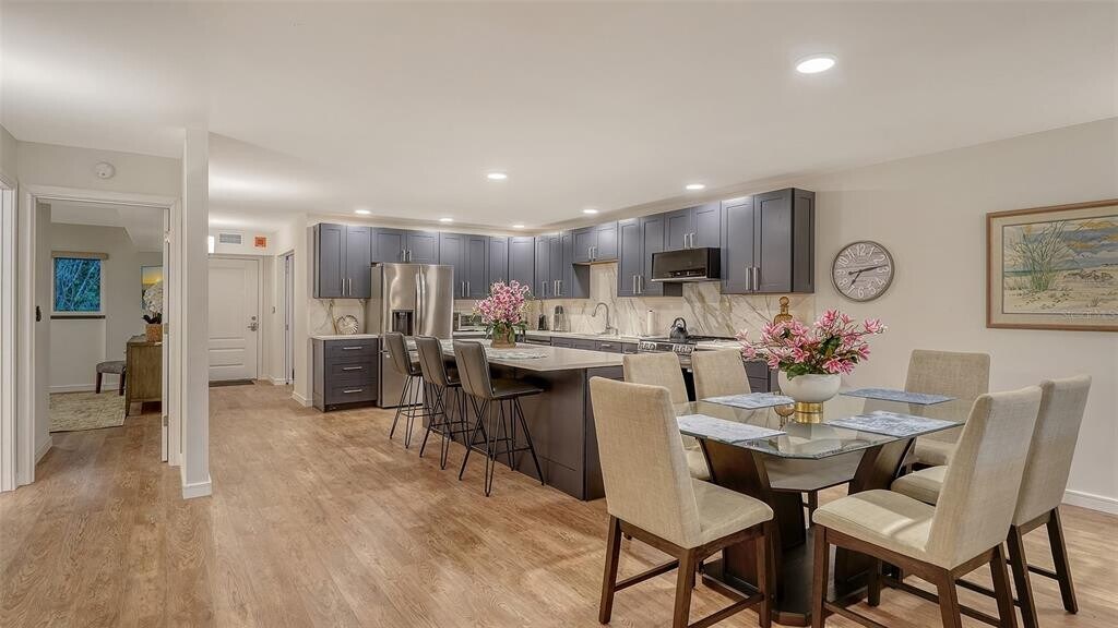 Beautiful completely remodeled 2-bedroom,2-bathroom Tropical Oasis on Longboat Key. Relax and enjoy the Florida lifestyle at its best with stunning gulf views from this gorgeous second floor retreat. Just steps to the beautiful white sand and warm gulf waters. Upgrades include new open floor plan with spacious rooms decorated in a soothing coastal color palette. Heightened ceilings,hardwood engineered flooring,upgraded lighting and fresh paint. Enjoy cooking meals and entertaining friends and family at the large kitchen island with quartz countertops and backsplash,new solid wood,soft close cabinets and all new stainless -steel appliances. Spectacular morning views and amazing colorful sunset views await as you step into this lovely well stocked,turnkey furnished condo. Master bedroom boasts a king size bed and 40" TV with walk-in closets,en-suite master bathroom with double sinks,walk -in shower and access to the patio for heavenly gulf breezes and views. Second bedroom features a queen size bed and TV; the third flex room offers a queen bed for additional sleeping quarters for guests. Washer/dryer are located inside the unit in the laundry closet. Enjoy hours of entertainment watching wildlife including dolphins,manatees,turtles,birds and boaters from this perfect spot. Outdoor amenities include beachside private heated pool and hot tub. This lovely community showcases mature trees and well-maintained tropical lush landscaping. Other amenities include a gym,sauna,craft room,large social room with catering kitchen,bicycle and Kayak storage. This property is available from December - April. MLS# A4666130