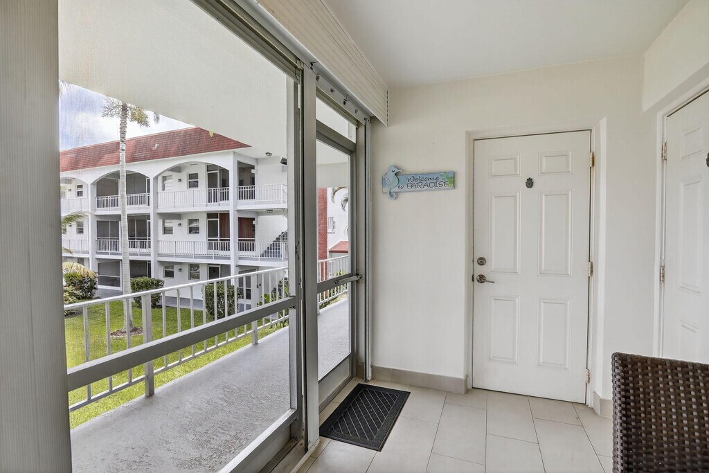 Welcome to Paradise Villas -- a charming 1-bedroom, 1-bath condo in a desirable 55+ community. This second-floor residence is an ideal primary or seasonal home and offers peaceful pool views from a private screened patio. The unit features tile flooring throughout and a previously remodeled kitchen with granite counters and stainless-steel appliances. Amenities include a community pool, and the property is just a few miles from the beach and close to restaurants and shopping. The condo is offered furnished. No pets per association. Don't miss this opportunity -- schedule your showing today!
