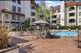 This unit is available in January. Resort style living at the Courtyards near Fashion Valley shopping center. Large 1BR/1/5 BA on the top floor with plenty of closet space. Washer/Dryer in unit and shared laundry on every floor. Fairly new AC/Heater unit and dishwasher. The unit has Gas fireplace and large balcony with storage closet overlooking pool. The Courtyards offers Swimming pools, hot tub, sauna, lighted tennis courts, clubhouse, gym, bicycle storage, community water fountains and ponds. Close to downtown, SDSU, USD, trolley, airport, and freeway. Guard/gated complex with underground assigned parkting. Elevators, trash chutes.