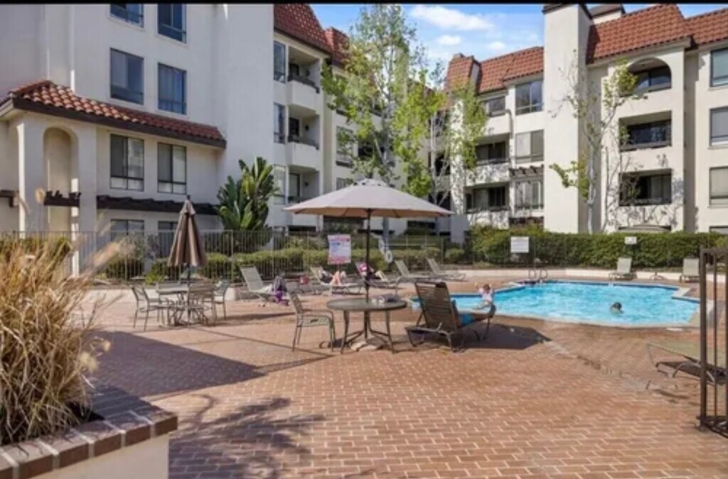 Enjoy effortless, resort-style living in this spacious first-floor end unit with direct access to the pool promenade—an ideal layout for dog/cat owners and those who love easy indoor–outdoor living. South-facing and filled with natural light, this 1,228 sq ft condo offers comfort, style, and exceptional convenience.Interior Features2 bedrooms / 2 bathrooms | End unitSouth-facing with abundant natural lightLuxury vinyl flooring throughout9-foot ceilings and cozy gas fireplacePlantation shuttersRemodeled kitchen with quartz countertops & premium Gaggenau ovensPrivate patio with extra storageIn-unit laundryCentral A/C & heatParkingTwo assigned parking spacesCommunity Amenities – The CourtyardsGuard-gated entryMultiple pools & spasTennis courts, racquetball court & saunaFully equipped fitness centerLush greenbelts, walking paths & resort-style groundsPet-friendly, walkable communityPrime Central LocationLocated at the west end of Mission ValleyMinutes to Fashion Valley, University of San Diego, beaches, airport & downtownEasy access to La Jolla and major freewaysLifestyle AppealIdeal lock-and-leave homeDirect pool and greenbelt accessPerfect blend of comfort, convenience & resort living in San Diego