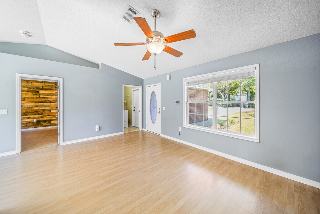 Southern and contemporary meet in this Milton Florida home! The living room boasts a faux brick accent wall, and flows to the breakfast/kitchen area which is flooded with natural sunlight from the expansive backyard. The master bedroom features a wood accent wall, walk in closet, and private bath, located off of the kitchen. The two additional bedrooms are located across the house and feature beadboard and shiplap accent walls of their own. The home sits on a beautifully landscaped (.45 acre) lot, complete with a fenced back yard and beautiful mature trees. Small pet okay with owner approval and pet fee and pet rent. There is a $250 Move-in Fee per household and a $50 Lease signing fee per tenant.