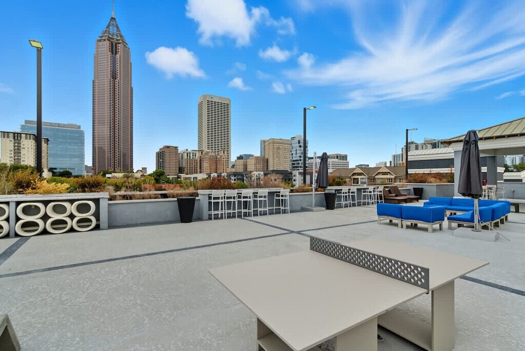 Feel at home in this stylish 2-bedroom apartment in the heart of Atlanta's Midtown. This modern, open-concept apartment features a gourmet kitchen with stainless steel appliances and an in-unit washer and dryer for your convenience. Enjoy access to the shared community pool, shared gym, and rooftop fitness center. One secured free parking spot is available. Located in prime Midtown, this apartment offers easy access to Atlanta's best. You'll be perfectly positioned to explore top attractions, dining, and culture. Nearby highlights include Georgia Tech (6-minute drive), Coca Cola (5-minute drive), and Piedmont Park (15-minute walk). Enjoy the convenience of walking to Colony Square's cafés, dining, and shops (8-minute walk) and the High Museum of Art (10-minute walk). Smoking is not allowed within 15 feet of the property, and there are no parties or events allowed. Unregistered guests are not permitted, and any unauthorized guest is subject to a $250 per guest penalty. If the neighbors call the police due to noise disturbance, a fine of $1000 is applicable. Pets are strictly not allowed by the building management, and a violation will result in immediate evacuation and cancellation without refund. Please respect check-in and checkout times, as any unauthorized early check-in or late check-out is subject to a $250 fine. Includes a dedicated workspace for digital nomads. [SI]