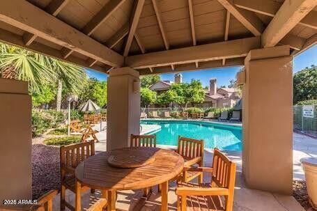 THIS SEASONAL RENTAL IS AVAILABLE SUMMER MONTHS 5/1/2025 - 11/30/2025 HYPOALLERGENIC UNIT You will be hard pressed to find a finer appointed property in gated Villa Antigua! UTILITIES INCLUDED COMPLETELY TURN KEY-FURNISHED**STEPS TO Clubhouse Front Gate Location! Neighbors Paradise Valley. Free Scottsdale Trolley steps away! 15 minute to sky Harbor. Corner unit neighbors the gym - community center,and private tennis court. These amenities are included with the lease. Groomed as a luxury rental. You will not want for anything. Fire stick installed in both Living Room and Master Bedroom. Wi-Fi included. Professional housecleaning is included in $3500 rate and required (cleaner info to be provided upon lease execution 2x a month service). Free Scottsdale Trolly STOP is right in front of the complex (bus stop is at the entrance to Villa Antigua/78th Street). Trolly takes you to Scottsdale fashion square,the quarters,Kierland,Scottsdale Museum,and ABUNDANT shopping/dining. Enjoy quiet nights in this hidden gem location. Rear patio backs to a green belt and is just steps to the heated swimming pool and spa! **Condo has been renovated for the allergen sensitive. Please,NO PETS. ** Mini Office capabilities in master bedroom with wifi and prin