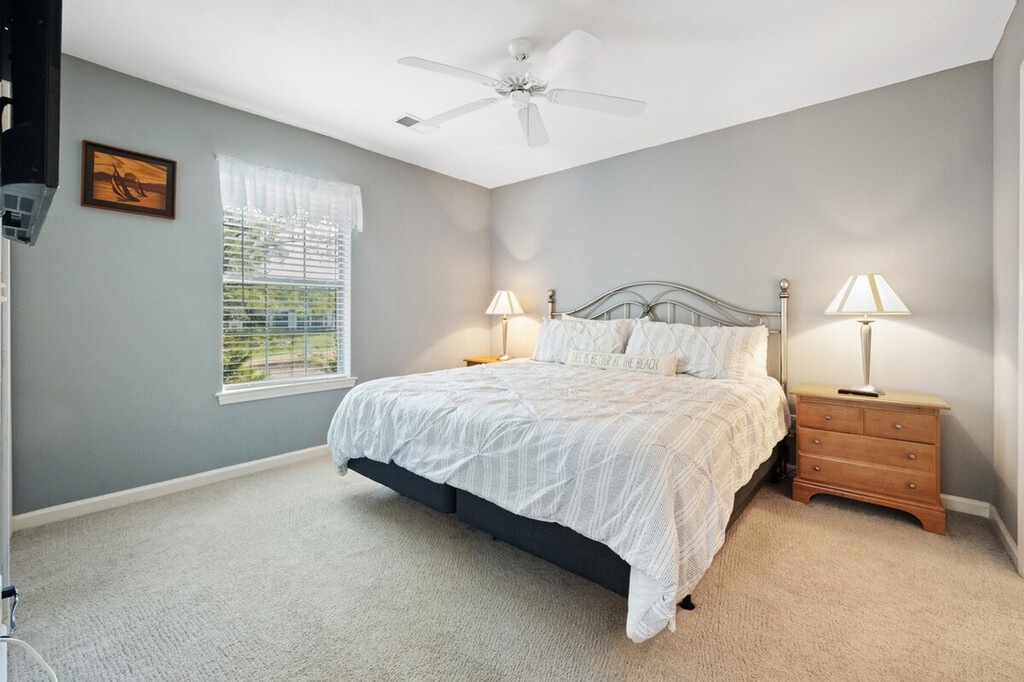 Welcome to Bayside Birdie at True Blue, a charming apartment located in the beautiful True Blue Golf Resort on Blue Stem Drive. This delightful residence offers a comfortable living space with a primary bedroom featuring a swing king bed and a private bathroom with a shower/tub combo, as well as a guest bedroom with two twin beds, accommodating up to four guests. The property is pet-friendly, allowing one small dog with a maximum weight of 25 lbs. Smoking is not permitted on the premises. [SI]