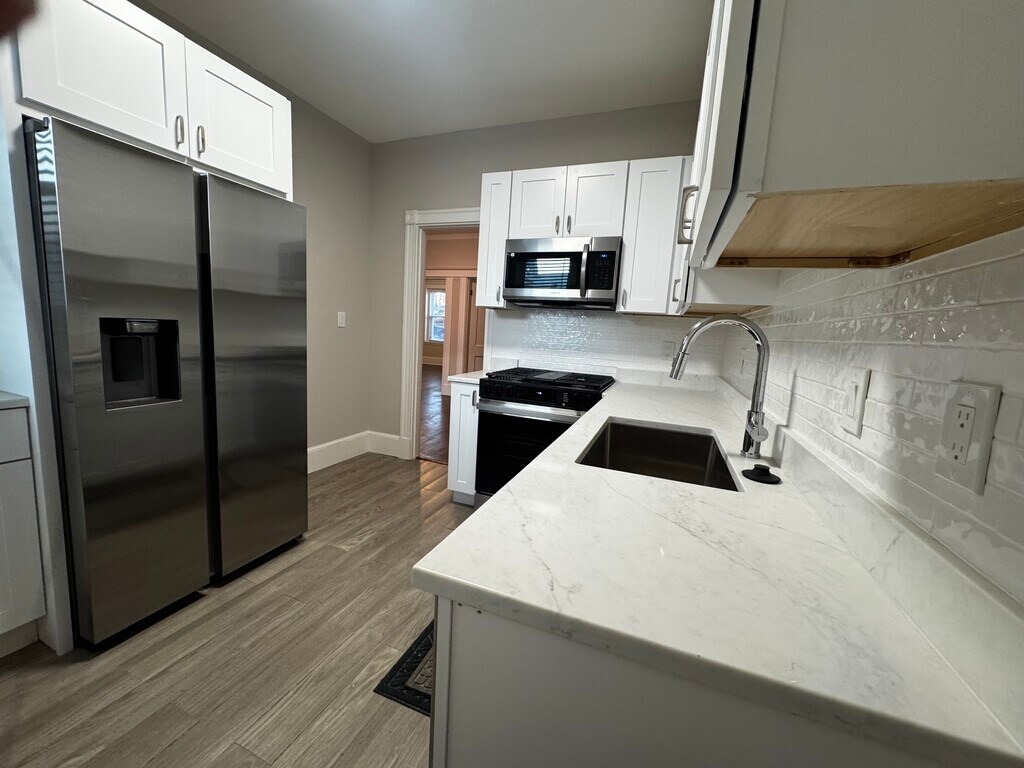 We are comfortable covering the broker fee in lieu of your client. This spacious condo has just been gutted and transformed into a modern feeling, 3-bed apartment with lots of natural lighting throughout, featuring a brand new kitchen with stainless steel appliances, Hardwood floors throughout, and a large Balcony off the 2nd bedroom. Other amenities include: 1 storage room in the basement and 1-off street (assigned) parking spot included! Located on a quiet dead-end road on the backstreets of Allston. Radcliffe Rd is very convenient for all types of commuters with the nearest MBTA green line stop being only 0.2 miles away. You can also walk, bike, drive or take a stroll to the nearby restaurants, shops, or bars right on Harvard Ave ! Students are only 2.5 miles away from BC or 1.2 miles away from Boston University ! No pets allowed unless they are a certified support animal. Proof of ESA and photo must be submitted with applications. Security deposit negotiable on a case-by case basis