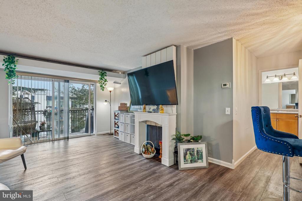 Rare Top Floor Condo with Wood Burning Fireplace. Open Concept Kitchen with Updated Stainless Steel Appliances, Shaker Style Maple Cabinets, Marble Look Porcelain Tile Floor and Accent Wall, Breakfast Bar and Pantry. New Paint! LVP Flooring in the Living and Dining Room. Spacious Bedrooms with En-Suite Bathrooms. Huge Vanity Areas. The Primary Bedroom has a Large Walk-in Closet with Closet Organizer, and the Primary Bathroom has a resurfaced Tub and Tub Surround. The second bedroom has 2 Large Closets, and an All-In-One Washer/Dryer. There is a Private Balcony Overlooking a Quiet Courtyard with Mature Trees. Parking for 2 Cars. Rent Includes ALL of the Utilities, Shuttle to the Metro, Community Pool, Fitness Center, Club House, Tennis Courts, Volley Ball Courts, Tot Lot and Dog Park. Super Close to the New Development at Landmark Mall and Across the Street from Retail and Restaurants.
