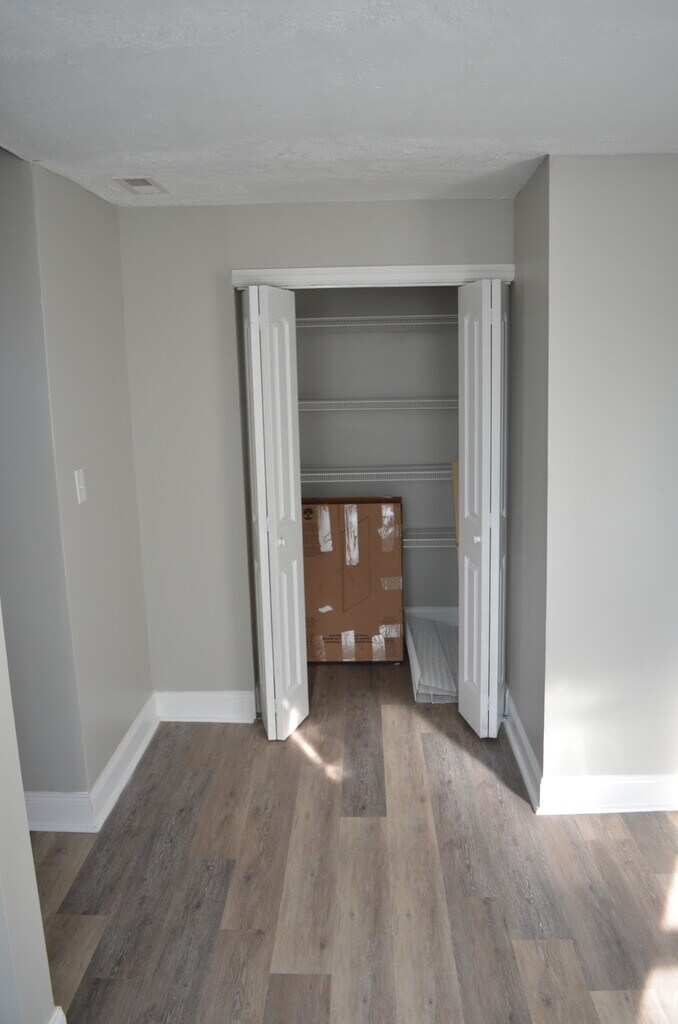 Tucked away from the busy main street, this beautiful 3 bedroom unit, fully renovated unit, with all new appliances, cabinetry, plumbing, central heating and air conditioning, and storage is well suited for a small family. The front porch door leads directly into the kitchen equipped with a deep sink, dishwasher, full sized refrigerator, oven/range combo, and ample cupboard storage. The numerous windows, some facing Maryland Ave, some facing the side yard, and some overlooking the back yard, provide excellent light to create a bright airy space. White and gray granite countertops compliment the neutral paint and easy care vinyl plank flooring which runs throughout the unit. The very large pantry in the kitchen has deep shelving for food and home supply storage. Three bedrooms are located to the left of the kitchen adjacent to the central room which could be used as a hall or sitting/living room. Each bedrooom has a ceiling fan and large windows provide nice light. Large stand-alone closets in each room add additional storage to a tenant's own dresser. The largest bedrooom also has an exterior door with a small porch that could be utilized in addition to the other larger porch off the kitchen. The stack washer dryer combination unit has it's own closet and is located right outside the bedrooms for easy access. The large bathroom with shower/tub combination, toilet, 30" sink with storage base and mirror/medicine cabinet provides extra space for a family's needs. For additional or seasonal storage, tenant's have one half of the attic, accessed by a pull down ladder to keep any items handy, but out of the way. Shaded and grassy common area in the back yard is a nice place to enjoy a little quiet right off the main road. The neighborhood and fantastic river views are just a short walk away as are fast food restaurants, parks, and other shopping. Please request an application. Tenant is responsible for utilities (water & electric). Background and credit check are required. Please message through the app for questions.