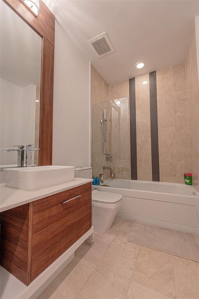 LOWEST PRICE IN THE BUILDING!!! Very spacious 1bdr / 1bth plus den!. The building is LEED-Silver Certified Energy efficient and was built in 2016. The unit has beautiful bay and skyline views, spacious terraces with glass railings, Italian cabinetry, quartz countertops, custom backsplash, Bosch s/s appliances and s/s undermounted sink with single lever kitchen faucet with pull out spray. The unit also has European-style bath fixtues, sink an accessories, front loading stacked washer/dryer, energy efficient air-conditioning system with touch control thermostat, wall sound insulation and energy-efficient and impact-resistant windows and sliding glass doors. The building is located in the trendy Edgewater neighborhood with easy access to Midtown, downtown and beaches.