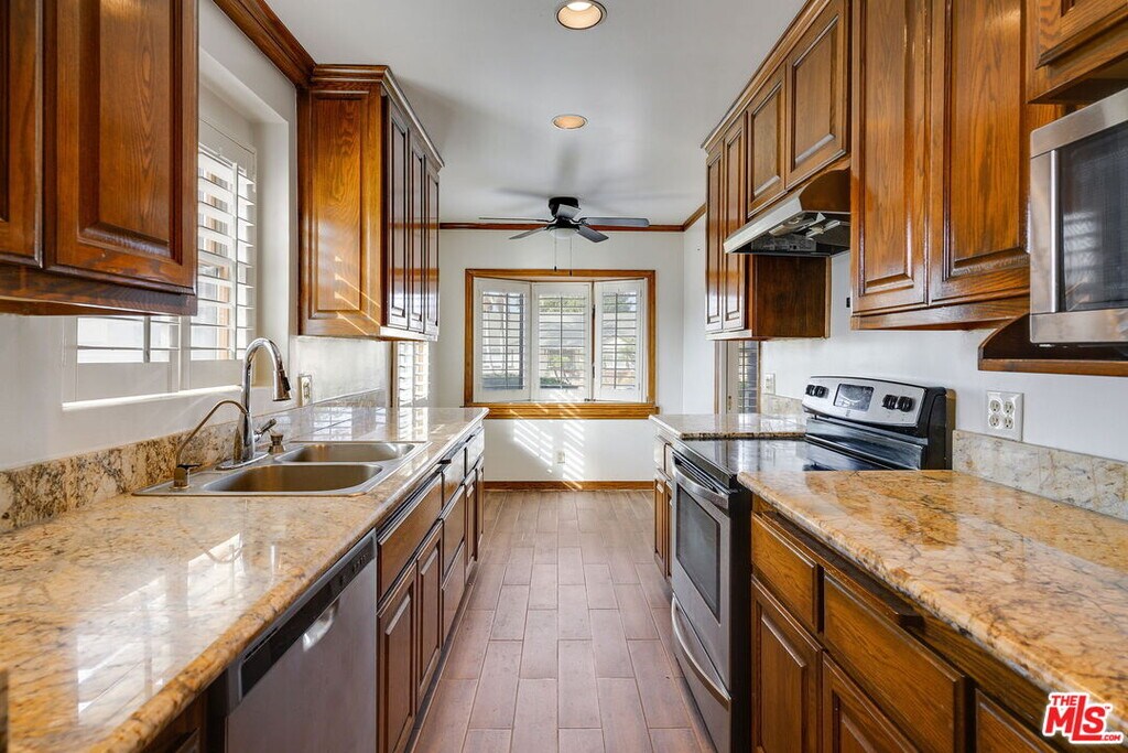 Large 3 bedroom 2 baths single family home located in Ladera Heights. Separate dining room, large living room and family room. Easy access to 405 frwy near Fox Hills Mall and L.A. Airport 10 minutes away. This home features hardwood floors and tiled kitchen and bathrooms. Kitchen includes granite countertops, appliances include washer and dryer, stainless steel refrigerator, stove, microwave and dishwasher. 2 car garage with 2 remotes. Very large backyard with lemon tree. Quiet friendly neighborhood.