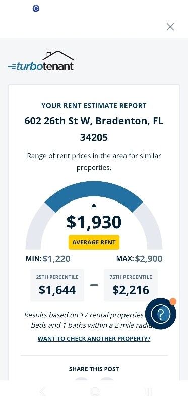 | Apartamentos 2 Dormitorios en Bradenton | $1,917 | $850 | $5,302 |
