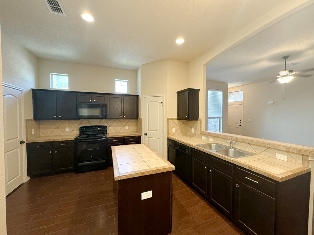 This charming two-story duplex on Creekside Circle offers a blend of modern amenities and convenient location. The front yard is thoughtfully designed with xeriscaping. Inside, the downstairs features stylish wood like tile flooring throughout, creating a cohesive and stylish look. The eat-in kitchen is a highlight, equipped with black appliances, an island and tiled countertops, all overlooking a spacious living room-ideal for both everyday living and entertaining. Upstairs, you'll find the primary bedroom complete with walk-in closet, and a full bath featuring a tub/shower combo and double vanity. The secondary bedrooms are generously sized, accompanied by a full bath and a convenient laundry room closet. The covered back porch provides a relaxing outdoor space, and the private backyard is the perfect size for easy maintenance. Additional amenities include a two-car garage with garage door opener, ensuring secure and convenient parking. Located with easy access to Creekside Shopping, you're minutes away from a variety of shops, Buc-ee's, entertainment options, and restaurants. The proximity to IH-35 make commuting and traveling straightforward and hassle-free. **Fridge will be furnished upon request**