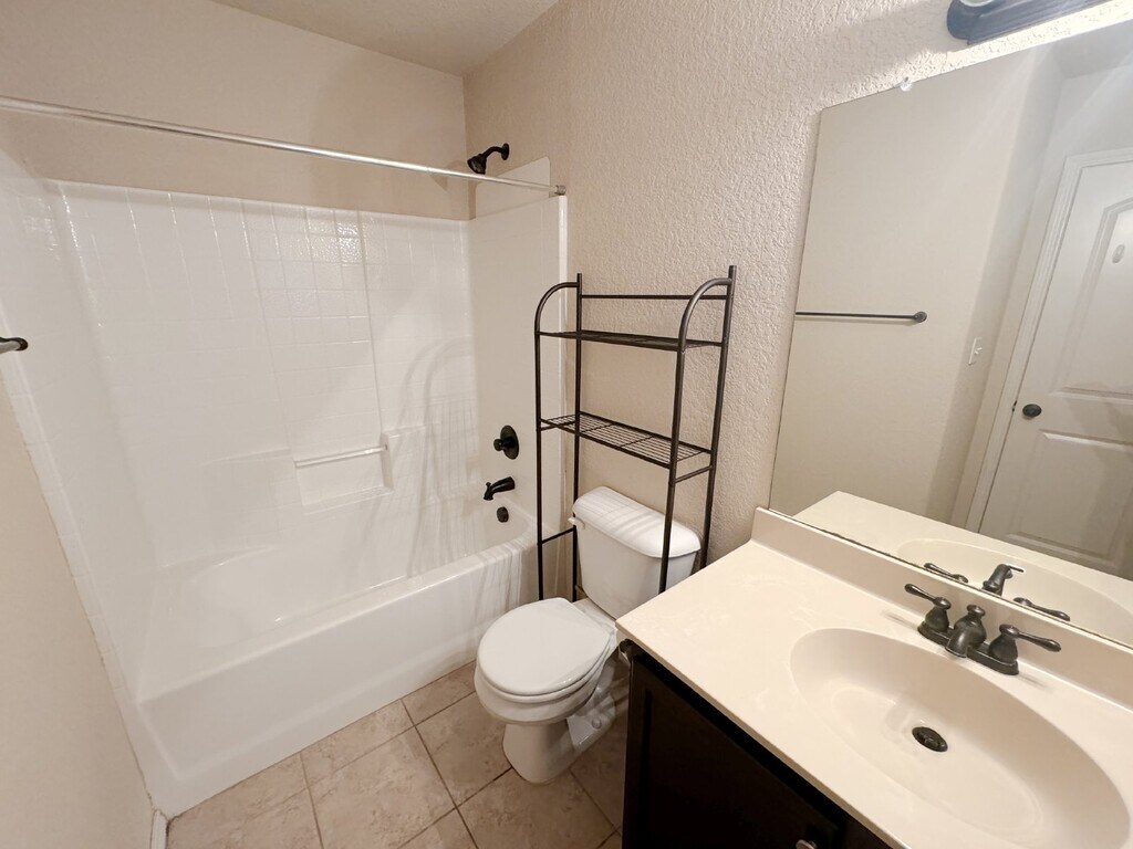 This charming two-story duplex on Creekside Circle offers a blend of modern amenities and convenient location. The front yard is thoughtfully designed with xeriscaping. Inside, the downstairs features stylish wood like tile flooring throughout, creating a cohesive and stylish look. The eat-in kitchen is a highlight, equipped with black appliances, an island and tiled countertops, all overlooking a spacious living room-ideal for both everyday living and entertaining. Upstairs, you'll find the primary bedroom complete with walk-in closet, and a full bath featuring a tub/shower combo and double vanity. The secondary bedrooms are generously sized, accompanied by a full bath and a convenient laundry room closet. The covered back porch provides a relaxing outdoor space, and the private backyard is the perfect size for easy maintenance. Additional amenities include a two-car garage with garage door opener, ensuring secure and convenient parking. Located with easy access to Creekside Shopping, you're minutes away from a variety of shops, Buc-ee's, entertainment options, and restaurants. The proximity to IH-35 make commuting and traveling straightforward and hassle-free. **Fridge will be furnished upon request** ***Showing Agent Compensation is 25% of the Monthly Rent, CAPPED at $500. Applicant’s Agent must accompany their clients to the showing and present all documents to their clients.****