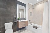 Stylish 1-bedroom, 2-bath apartment featuring an open kitchen with marbled quartz countertops, GE Profile appliances, and natural oak floors. The well-appointed bedroom is complemented by an in-unit washer and gas dryer. Prime Hudson County location near NYC transport, shopping, and dining. Parking available in a private garage with assigned spaces, alongside a gorgeous lobby, a spacious fitness center, and a welcoming lounge.