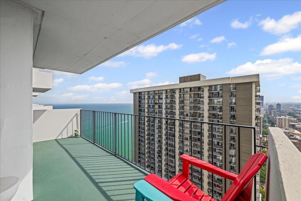 Luxury 1-bedroom corner unit with a huge balcony overlooking Lake Michigan at the Malibu East Condominium. The 907 square foot unit has a remodeled kitchen with stainless steel appliances, quartz countertops, and bamboo plank flooring. The living room/dining room and the bedroom have upscale carpeting and new insulated glass doors to a 154 square foot balcony. The bedroom also features a remote-controlled ceiling-to-floor blackout shade, track lighting, and a walk-in closet with a built-in dresser, organizer, and full-length mirror. The renovated bathroom features a retro design with all-new appliances, vanity countertop, lighting, and reconditioned tilework. The unit comes with free internet service and basic cable. Please note: the entire unit has been repainted a neutral beige-grey color with white trim, since the pictures in this listing were taken. The upscale Malibu East is one of the most sought-after residential towers on the north side of the city, sitting directly on the shoreline. It features: two heated outdoor pools; a tennis court; a sundeck with lounge chairs, benches and gazebos; a grill and picnic area with tables and chairs; exercise facilities including a running track; a ping pong room; a party room with a commercial kitchen and bar area; a billiard room; a library; and its own mall with a grocery store, medical offices, subscription gym and other services. The building also features: laundry facilities; a dry cleaning service; a locked bicycle storage room; a package receiving room; and a 3-story indoor parking garage offering valet and self-park options, and electric vehicle charging stations. The 147 CTA express bus stops in front of the building, and the Thorndale and Granville El stations are 3 blocks away. Loyola's Chicago campus is 3 blocks north, and Whole Foods, Aldi, Walgreens, LA Fitness, and assorted restaurants are a couple of blocks west on Broadway. A few blocks further west, you'll find the Clark Street shopping and entertainment district.