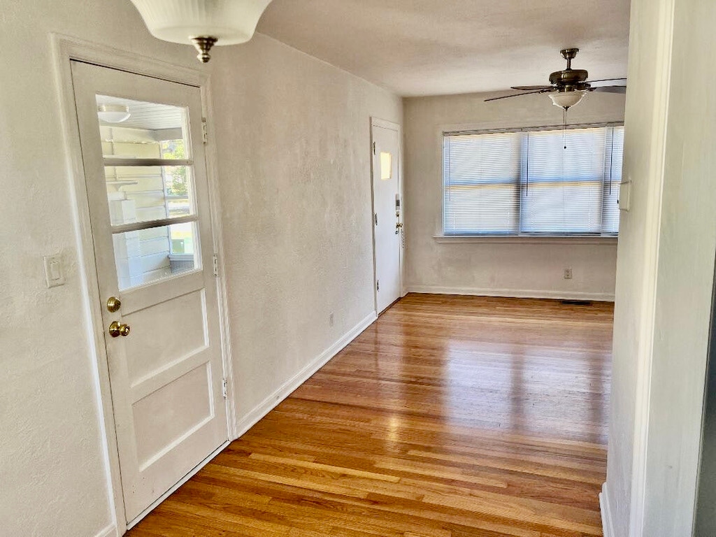 Unfurnished newly renovated 2 bedroom/2 bathroom (6 rooms) move-in ready home. Two blocks walking distance from Stetson University Campus and downtown DeLand. This home has a newer a/c system, refrigerator, range & hood, and ceiling light fans in every room. Freshly painted with beautiful original wood flooring throughout. Master bedroom has a walk-in closet. Storage shed on premises along with an attached carport. This area is so quiet, you’ll feel like you’re in the country. Breakfast nook and an 8' x 13' enclosed screened side porch. Security deposit of $1,550 required along with the first month's rent of $1,550 for a minimum of a one year rental term. Available 12/18/25. Tenants pay for all the utilities. Hurry up and take a tour before this home says RENTED!! For viewing Contact: German ()