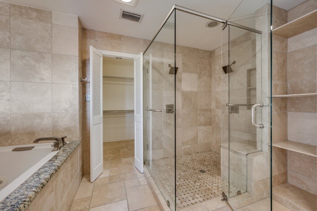 Unique 2 BR 2 BA condo in a prime Dallas location close to SMU and HPISD schools. Beautifully updated kitchen and baths. Large living area, study, master, huge master bath. 2nd bed has private entrance. Balcony has seasonal peek of downtown skyline. Complex offers both elevator and stairs. Interior space all on one level.
