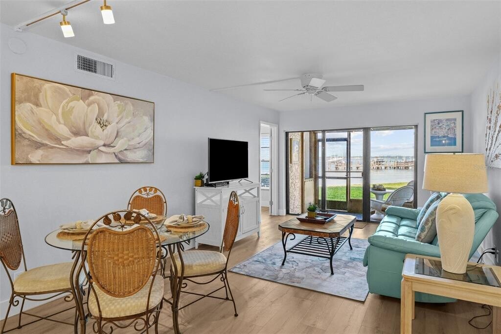 Casa Del Mar Villa. Stunning waterview from this beautifully updated first floor condo! Make a healthy breakfast in the gorgeous kitchen,sit at the breakfast bar or carry your coffee to the porch to watch the sunrise. Open floorplan offers a waterview from the kitchen,dining and living area. Waterside primary suite has a walk-in closet and ensuite bath. The second bedroom has a garden view and access to the hall bath with tub/shower. Updates in this pretty villa include new flooring and fresh paint throughout,new kitchen appliances,cabinets and countertops,both bathrooms and a new washer and dryer. Lounge at the community pool or join Isla Del Sol Yacht and Country Club to enjoy golf,tennis,pickleball and social activities at the Clubhouse. Shopping and dining are just a quick walk or golf cart ride away in Isla Del Sol. Take a short drive over beautiful bridges to St. Pete Beach,Tierra Verde or Downtown St. Pete. International Airports are 30 minutes away. Fully Furnished. Rates may vary depending on the length of term. Available October 1st. MLS# TB8387854