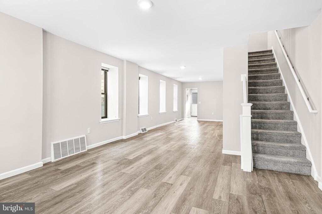 Totally redone townhouse in the heart of Jenkintown. 1 parking spot in the rear would allow 2 cars to park one in front of the other. Inviting covered front porch is about 16 feet long. Enter into the open floor plan living room and dining room space. Generous coat closet and 1/2 bath for your convenience. The kitchen has soft close doors, SS appliances and farmers sink and granite/quartz counters. And rear exit to parking area. Great amuont of both cabinetry and counter space. 1st floor flooring is beautiful gray driftwood type flooring and there are an ab undance of windows. Basement is unfinished but houses the heater and hot water heater and great for storage. Second floor is carpeted with front load washer and dryer in hall closet. Full ceramic tile hall bath with double wide shower. 2 generous bedrooms each with plenty of windows. Central Air and Gas hot air heat. Tenant pays, gas and electric and cable ( if they want cable) . Landlord takes care of cost of water, sewer and trash, and snow removal and landscaping. Required 1st mo. rent and 1 mo security. tenant must maintain renter's insureance.