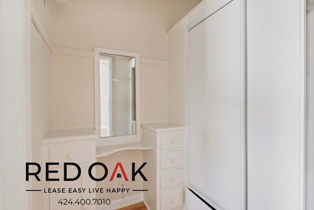 Comfortable Studio Featuring Vintage-Inspired Details, Kitchen Appliances, High Ceiling, and On-Site Laundry ~ In Mid Wilshire! Key Features: ~ Classic Charm: Stately brick building with lush landscaping and elegant detailing. ~ Bright Spaces: Large windows flood the home with natural light and highlight hardwood-style floors. ~ Ample Storage: Big closet plus a walk-in with custom built-ins for easy organization. ~ Cozy Comfort: Gas furnace and ceiling fan keep temps just right. ~ Charming Kitchen: Custom hardwood cabinets and essential appliances included. ~ Stylish Bath: Soaking tub, tile finishes, hardwood vanity, and great lighting. ~ Utilities: Water, gas, sewage & trash—covered in rent. ~ On-Site Laundry: Convenient and hassle-free. ~ Prime Location: Mid-Wilshire living with easy access to food, parks & more. ~ Don't miss out on the opportunity! Available for an immediate move-in. Call to schedule a viewing today! LEASE TERMS: One Year Lease Photos may not reflect the exact available unit. Availability is not guaranteed—please verify all details. Square Footage is approximate. Street Parking only. Showings may not be 1-on-1. Listed pricing and special offers are only valid for new residents. Pricing and availability are subject to change without notice and may vary between similar units. Red Oak does not warrant or represent that image renderings on this website are an accurate representation of every floor plan available at the Property. Floor plans may vary unit by unit and by location at the Property. Please contact the Leasing Office to schedule a tour of the Property and the particular unit you are interested in. Pricing and availability are subject to change at any time. **All applicants receive equal consideration; we follow all Fair Housing laws.*