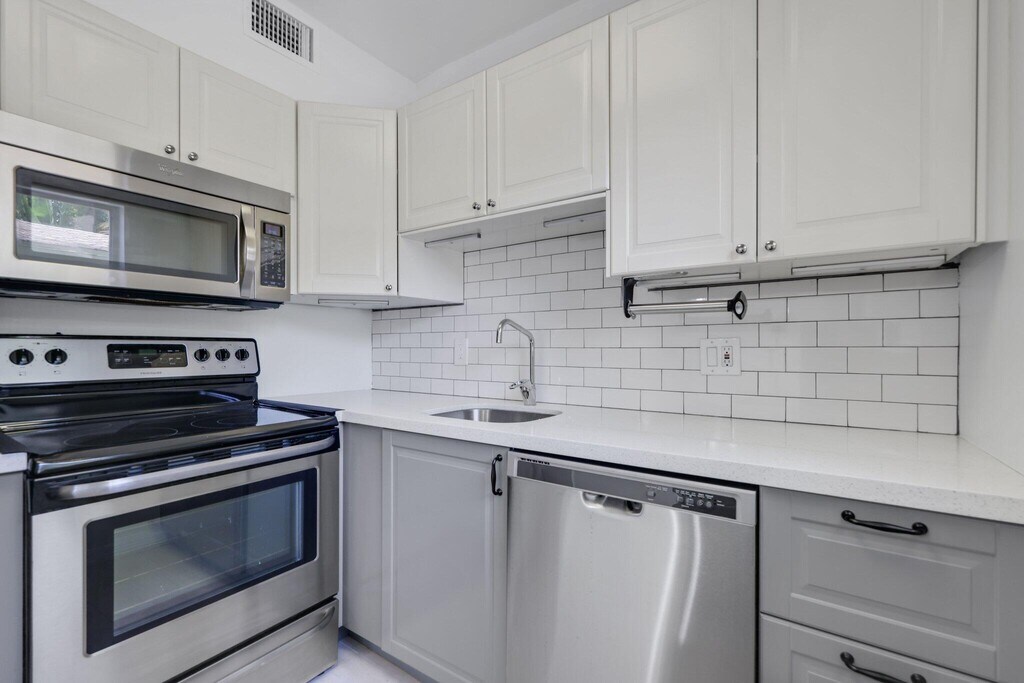 Step into this spacious and bright ground-floor condo, perfectly situated in the highly sought-after Victoria Park area. This home features a generous living space with sleek flooring and crisp white walls that create a modern, inviting atmosphere. The kitchen is a standout, boasting waterfall quartz countertops, a stylish subway tile backsplash, and stainless steel appliances--perfect for any home chef.Enjoy views of the sparkling pool from your front window, along with the peace of mind that comes with hurricane-impact windows and doors. Just through the sliding glass doors, you'll find a private outdoor seating area--ideal for relaxing or entertaining.The updated bathroom and walk-in closet add comfort and convenience off the primary bedroom.Make this beautiful condo yours today!