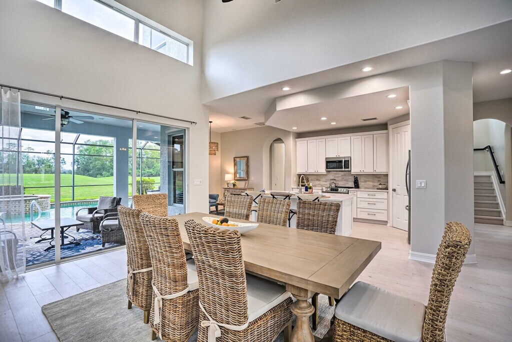 The advertised rate of $12,529/month is the lowest available price, based on a 1 month(s) stay with a move-in date of April 17, 2026. Rates vary depending on the duration of stay, season, and other parameters. For exact pricing and additional pricing components, please visit our website and enter your desired move-in and move-out dates. The rate is applicable when billed upfront; it can be higher if billed in multiple payments. Feel at home in this Naples vacation rental, offering 3 bedrooms and 2.5 bathrooms. This home features a bright and luxurious interior and a furnished lanai. This 3,500 sq ft home features stainless steel appliances, a private pool (depth: 1’-6’), a hot tub, and an outdoor dining area. Inside, you'll find smart TVs, an en-suite, a jetted tub, and a walk-in closet. The kitchen is equipped with a central island with seating, dishwasher, refrigerator, stove/oven, microwave, coffee maker, kettle, Crockpot, blender, toaster, spices, cooking basics, dishware and flatware. Other amenities include free Wi-Fi, central air conditioning, towels and linens, a washer/dryer, complimentary toiletries, hair dryers, hangers, an iron/board, trash bags and paper towels. There is an optional $400 fee to use the community amenities, including the pool, golf courses, spa, bocce ball, tennis, and pickleball, which is paid on-site. Enjoy easy access to relaxing beaches and plenty of amenities. Spend your days soaking up the sun on Naples Beach, perfect your swing on one of the many championship golf courses around the resort, or take the kids to Naples Zoo! This is a gated community. There is a Ring Doorbell device with an exterior security camera facing the front outdoor entry. The camera does not look into any interior spaces and actively records video when motion is detected or when the video doorbell button is pressed. No smoking, pets, events, parties, or large gatherings are allowed. Guests must be at least 25 years old to book. There is step-free entry, with a bedroom and bathroom on the 1st floor. Parking is available in the driveway (2 vehicles) and garage (2 vehicles), but there is no street parking. Includes an office with a desk. [SI]