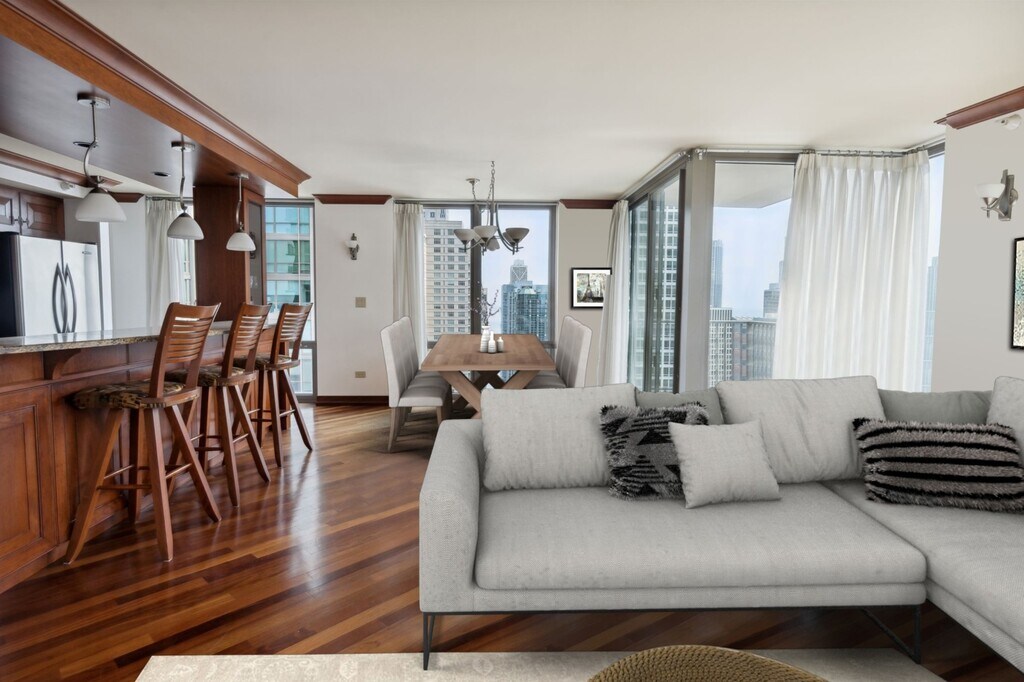 Photos Coming Soon These sample photos are meant to give you a sense of Blueground’s design style. Layout and furniture are subject to change. This apartment will be ready by the date indicated. Be the first to rent! Show up and start living from day one in Chicago with this beautiful two bedroom Blueground apartment. You’ll love coming home to this thoughtfully furnished, beautifully designed, and fully equipped Near North Side home. (ID #CHI1405) The advertised rate of $1,820/month is the lowest available price, based on a 1 month(s) and 24 day(s) stay with a move-in date of January 10, 2026. If you’re looking for a 1-year stay, the rate is $3,150/month. Rates vary depending on the duration of stay, season, and other parameters. For exact pricing and additional pricing components, please visit our website and enter your desired move-in and move-out dates. The rate is applicable when billed upfront; it can be higher if billed in multiple payments. Brokers are welcome to reach out. Were you looking for an unfurnished lease? Try Blueground instead and upgrade from unfurnished to furnished living: - Furnished at rates comparable to unfurnished - No setup or furniture costs - save thousands - Move-in ready - save time, just bring your suitcase Designed with you in mind Gorgeous furniture, fully equipped kitchen, smart TV, and a premium wireless speaker are just a few of the amenities you’ll find inside this two bedroom apartment. Ideally located in Chicago, you’ll find a lot to love outside as well. When you’re ready to relax, you’ll be happy to discover every Blueground bedroom comes with superior quality mattresses, luxury linens, and cozy towels. We handle everything so you can simply show up and start living. This apartment also offers in-apartment laundry. Sleeping arrangements Queen Bed, 63in/160cm Queen Bed, 63in/160cm Amenities Building amenities unique to this two bedroom apartment include an on-site: - Dryer - Elevator - Washing machine Arrival and ongoing support The entire apartment is yours to enjoy! Throughout your stay, you’ll have access to our Client Experience team through the Blueground App. You can schedule additional cleanings, submit maintenance requests, and view our neighborhood recommendations with just a few taps. We’ll share all details upon confirmation of your stay. Ideally Located This furnished apartment is located in Chicago's Near North Side neighborhood. Part of the storied Miracle Mile, this thriving neighborhood set on the shore of Lake Michigan is home to some of the city's most notable skyscrapers. The Near North Side has a fabulous dining scene, with everything from Chicago-style pizza to casual pubs to five-star restaurants. Neighborhood highlights include the Museum of Contemporary Art and 360 Chicago, a skyscraper with an observation deck. There's also Navy Pier, a lakefront park with casual dining, dinner cruises and carnival rides. The Near North Side is served by the CTA's Brown, Red and Purple Lines, as well as several bus routes. Other things to note Building amenities may have an extra cost. This Blueground apartment has flexible lease options, allowing you to book it for one month, a year, or more. [SI]