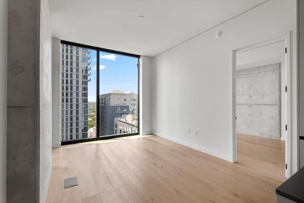 Be the first to live at The Modern Austin Residences in this efficient 1 bed, 1 bath, 653 sq ft northeast corner residence on the 23rd floor. Floor-to-ceiling windows flood the space with natural light and frame dynamic views of downtown Austin. The kitchen includes dark quartzite countertops and hardwood flooring. The Modern sets a new standard for downtown living with over 19,000 sq ft of amenities across three levels, including a 25-meter pool and spa, fitness center, yoga studio, indoor and outdoor lounges, dog park and wash station, business center, sky lounge with catering kitchen, and 24/7 concierge. Ideally located in the vibrant and fast-growing Rainey Street District, The Modern is surrounded by some of Austin’s best restaurants, bars, and future developments. Just steps from Waterloo Greenway and Lady Bird Lake trail, this location offers seamless access to nature, nightlife, and everything downtown Austin has to offer.