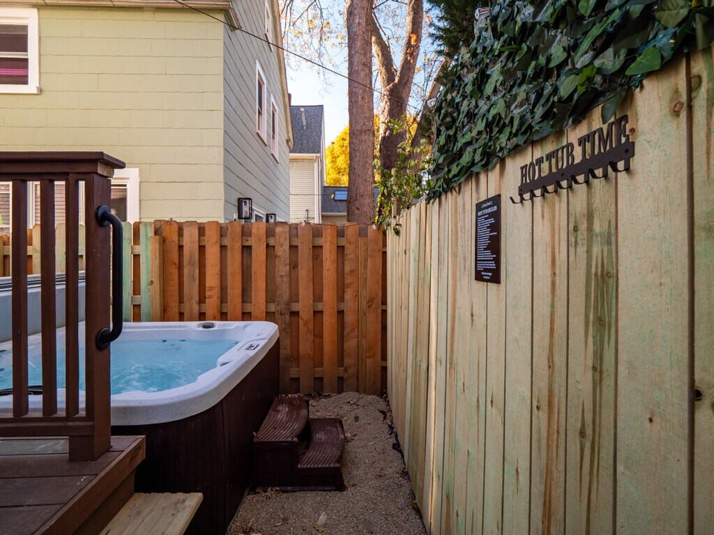 Welcome to your home away from home in vibrant Cleveland! This 4-bedroom, 3-bath retreat brings together comfort, convenience, and plenty of room to gather and unwind. The apartment features a relaxing front porch, perfect for your morning coffee or evening wind-down. The living room features plush seating, a great board-game selection, and a karaoke machine. The dining room seats up to eight, while the adjacent kitchen offers bar seating for four. The kitchen is fully equipped with a dual-Keurig and drip machine set-up, plus coffee, sugar, creamer, and flavored syrups provided for your convenience. Sliding doors off the dining area open to a back deck, and just down a few steps you’ll find a 7-person hot tub and a propane grill. All bedrooms come equipped with a Smart TV for your streaming enjoyment. Up to two dogs are welcome with a flat fee of $125. Requests for a third or fourth dog are subject to approval and an additional $100. Located in the heart of the Detroit-Shoreway neighborhood of Cleveland, you’re just minutes from some of the city’s best experiences. The neighborhood has a welcoming community vibe with historic architecture and growing amenities. Nearby highlights include the legendary West Side Market for local eats and fresh finds, the iconic Rock & Roll Hall of Fame and the lakefront district, and beaches, lakeside walks, and local parks are within easy reach for sunshine, good air, and outdoor fun. Please keep noise to a minimum when outside. Excessive noise may result in a $500 fine due to past neighbor complaints. Quiet hours are from 10 PM to 8 AM. No smoking is allowed inside the house, and there is a $500 fine for violation. Pets must be disclosed and approved in writing before your stay. Undisclosed pets will result in a $150 fee and may lead to cancellation without refund. No cats are allowed. Includes a dedicated office space on the first floor, ideal if you need to work or check in remotely. [SI]