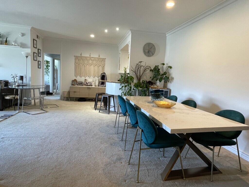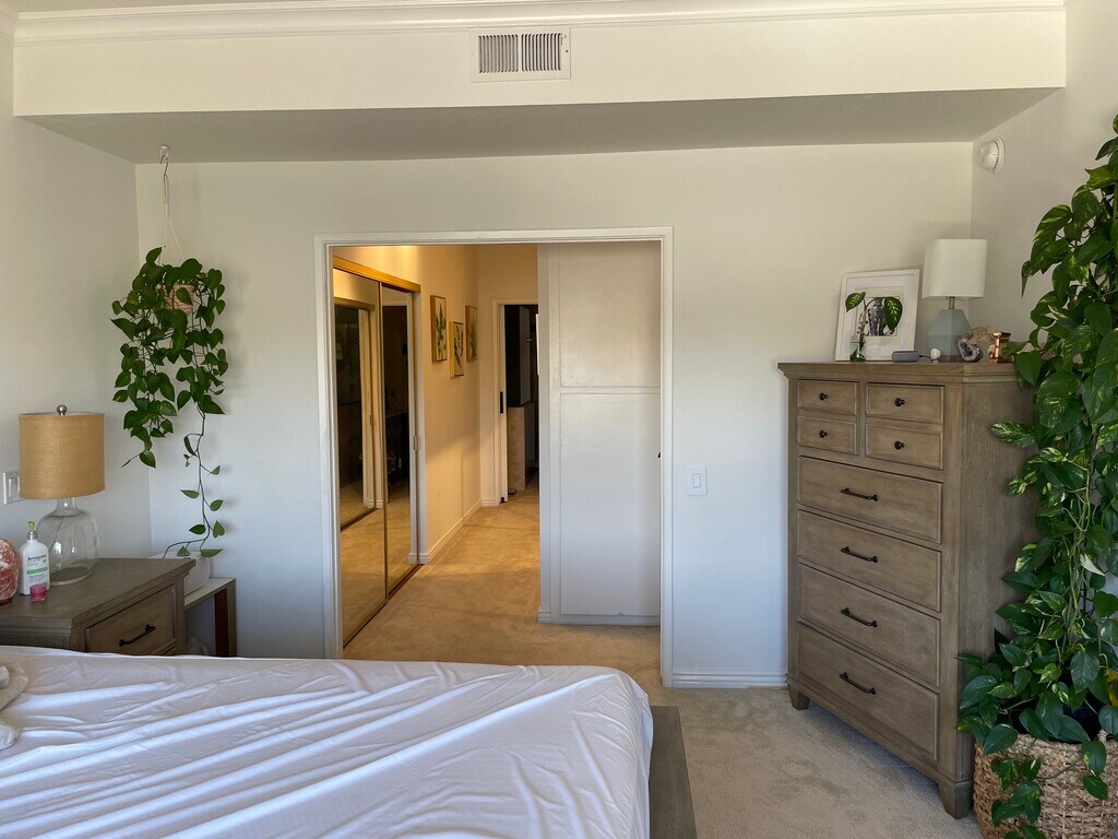 Top-Floor 2 Bed + 2 Bath in Prime Brentwood | 2 Parking | Pool + Gym Bright and serene top-floor residence in the heart of Brentwood, overlooking a quiet cul-de-sac with beautiful treetop views and abundant natural light. Solid double wood doors open to a welcoming entry foyer that leads into a spacious open-concept living area with a dedicated dining space and peaceful, light-filled living room. The two bedroom suites are thoughtfully positioned on opposite sides of the unit for privacy. The primary suite features: - New California Closets - Double vanity - Spacious walk-in shower - Automated blackout curtain (programmable) - Expansive treetop views The guest suite includes: - Ample closet space - Full bathroom with soaking tub and vanity - Excellent natural light and views Additional highlights: - Stainless steel kitchen appliances - Smart switches and lighting compatible with Alexa - TV mount in living room - Partially furnished (XL sofa included) Renovated lobby - Heated pool and spa - Fitness center - Two covered garage parking spaces - Laundry unit conveniently located just outside the unit Located just minutes from San Vicente Blvd shops and restaurants. Whole Foods is approximately a five-minute walk.