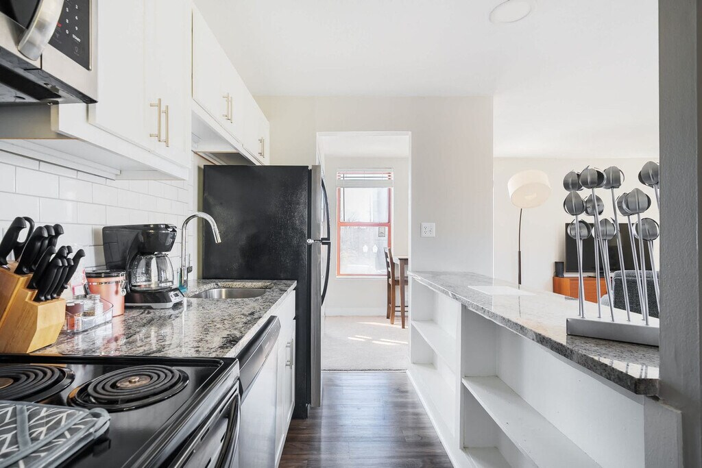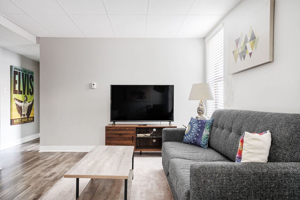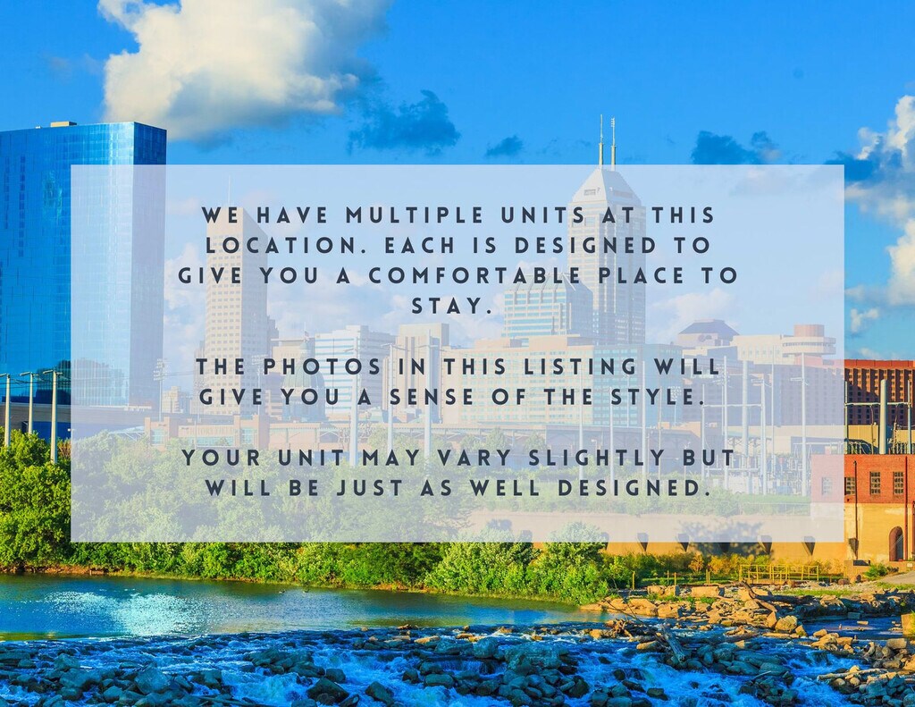 Welcome to this modern 1-bedroom condo in downtown Indianapolis! Feel at home in this centrally located apartment. This apartment features a fully equipped kitchen, a cozy living area, a 55" Smart TV, central heat and air, and a washer/dryer in-building. Parking passes are available for the on-site lot behind the building for $20 per night, $100 per week, and $250 per month. Please contact us in advance to reserve a spot as spaces are limited. Pets are welcome with a fee of $20 per night, $100 per week, or $250 per month, and are preferably potty-trained dogs under 50 lbs. Located on bustling Massachusetts Avenue, this vibrant neighborhood is known for its arts, culture, dining, and entertainment. With historic buildings, eclectic boutiques, art galleries, and diverse dining options, it offers a lively and engaging atmosphere. Indy offers various convenient transportation options, including car rentals, public transit via the Red Line and Indy Go Bus Systems, bike rentals through the Indiana Pacers Bikeshare Program, and ride-sharing services like Uber and Lyft. Many attractions, shops, and restaurants are within walking distance. The heating system is louder than average, and earplugs are recommended if you're sensitive to noise. Music may be heard from the cocktail lounge below (Sun–Thu 5pm–12am, Fri–Sat 5pm–1am; hours vary). Quiet hours are from 10pm to 6am, and parties and smoking are prohibited in the property ($1000 fine). [SI]