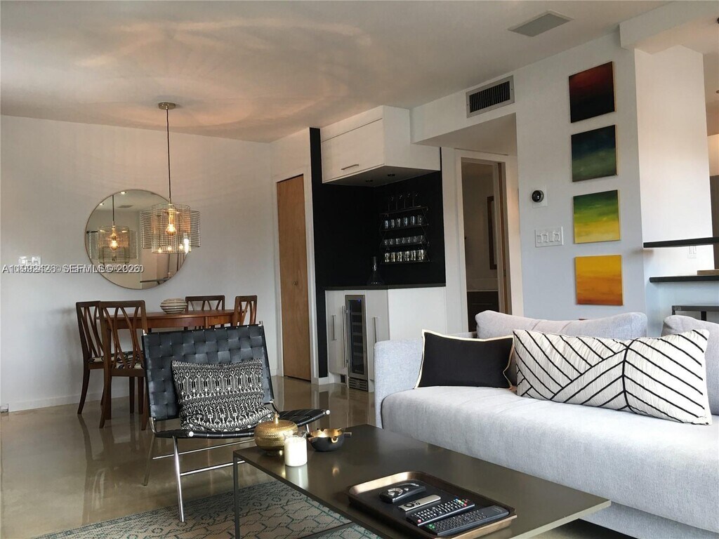 Fully Furnished Elegant Newly Renovated 1 bedroom 1 1/2 bath W/ GARAGE PARKING Fantastic Chef Kitchen All New Stainless Appliances Beautiful Polished Cement Floors New Washer and Dryer New Central AC Unit with WIFI connection. Surround sound throughout. Minutes from the Beach and Shopping. You Must See MLS # A11992426