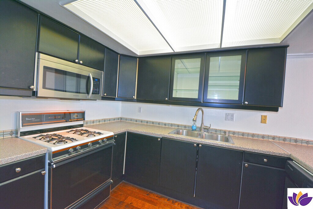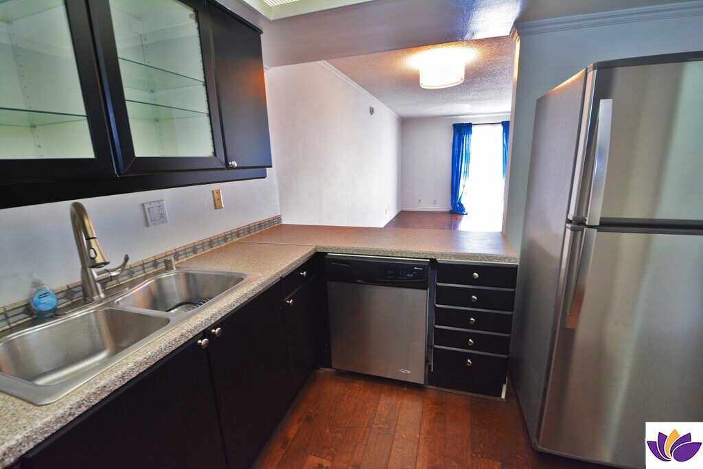 This 1 bed/1 bath bright and spacious condo with modern hardwood floors throughout, comes with beautiful modern kitchen and ample storage space, with sizable living room that connects to an open balcony overlooking a sparkling pool. The property is located close to schools, variety of shopping places including Americana Mall, Glendale Mall and Theaters. Choices of restaurants and cafes abounds. Quiet neighborhood. Dishwasher, refrigerator, stove, over-the-range microwave and washer & dryer included. Central air conditioning/heating and unlimited pool access. Huge bedroom with plenty of closets. Come see it before it's gone!!. * Water is included in the rent. * Sorry, no pets allowed.