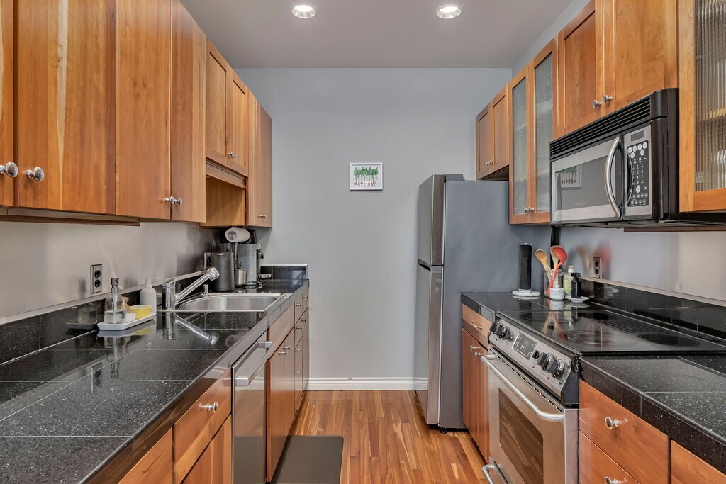 640 square foot east facing studio at the Hoyt Commons Condominiums * NEW Paint * NEW Stainless Appliances * New Washer/Dryer * New Quartz Countertops in Kitchen/Bathroom * New Sinks in Kitchen/Bathroom * New Cabinet/Closet Hardware * New Bathroom Hardware * 10 Foot Ceilings * Hardwood Floors * 3 Closets * Air Conditioning * Window Coverings * Covered Balcony * One Reserved Parking Space * One Storage Cabinet (above parking space) Walk Score 99 Transit Score 87 Bike Score 98 No smoking One small dog ok with additional security deposit This is not an ADU We will begin accepting and screening applications on 4/10/26 12:45pm Applications received before this time will be considered received 4/10/26 8:45pm per Portland ordinance Please see screening criteria here: Applications should be submitted at this link only Available @May 23rd - 12 month lease $1,600/month inc: water/sewer/garbage/parking/storage locker $1,000/security deposit + $65 application fee + Building move/orientation fee $700 (OWNER TO PAY) Proof of renters insurance required before move in Full month rent due at move-in, if lease start date isn't the 1st, 2nd month is pro-rated