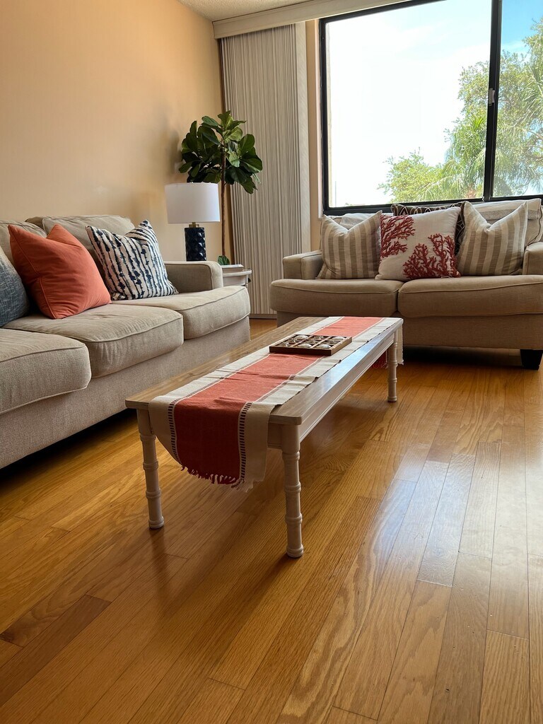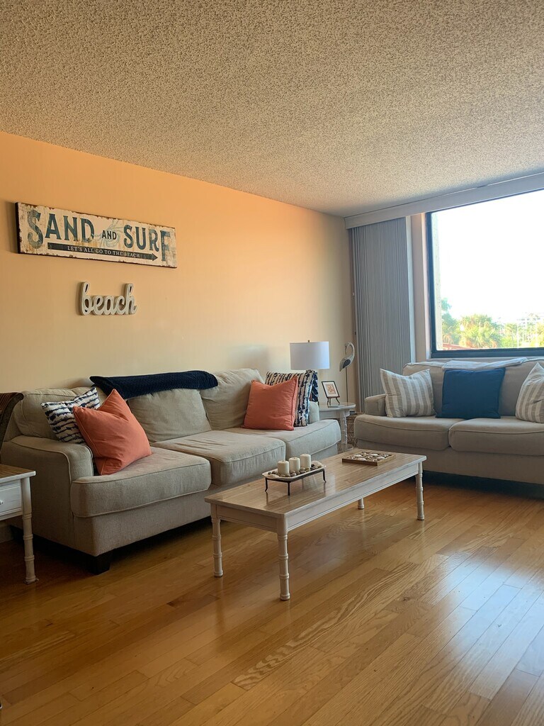 AVAILABLE April 15th 2026 for one month rental or long term. Min rental 30 days. WELCOME TO Orange Haus CONDO,Fully FURNISHED 1 bedroom unit in an upscale area, ideal for short or long term renter. Don’t miss this Island living at its best! Come enjoy a tropical retreat in this condo impeccably furnished with a king comfy mattress with large TV on the wall. This furnished upscale condo has everything you need pots, pans, dishes, wine glasses, keurig coffee maker, plenty of towels, sheets linens, just bring your toothbrush. Bring your bikes and ride the trails, fish off the dock. We keep it immaculate and is in a very peaceful relaxing safe atmosphere. The unit location is very private. Large relaxing living room, dining room with Large TV on the wall and fast internet. Minutes to world famous Ft De Soto Park and sunny St Pete Beach. Easy access to the I 275, minutes to downtown St Pete,Tampa airport and Mc Dill air base. This condo has master suite walk in closet, 1 1/2 baths and new free in unit washer and dryer for your convenience. Room for guests on the newer queen size sofa bed.Completely updated in a beachy atmosphere. Walk the lush gardens along the paths, swim in the heated pool surrounded by breathtaking views of Boca Ciega Bay. Fish on the dock and relax in the jacuzzi. Don’t miss this opportunity of staying in this fabulous beach lovers unit. For annual or vacation renter. No parties, no pets & no smoking. Applicable taxes for renters less than 6 months at 13%, $100 association application required plus a $500 refundable security depot. A cleaning fee of $150 upon departure. Close to beaches St Pete beach, Ft De Soto park and voted one of the top beaches in the country. Plenty of fun, shops and restaurants. Downtown St Pete offers many fabulous things to do, fantastic restaurants, open air markets and craft shows. Small plaza within walking distance that features a few nice restaurants, coffee shop, bank, boutique and hair salon. Free parking space for your vehicle. We pride ourselves with a clean safe, pleasant relaxing environment. Bike path at your footsteps. You will love this beautiful safe tropical environment.