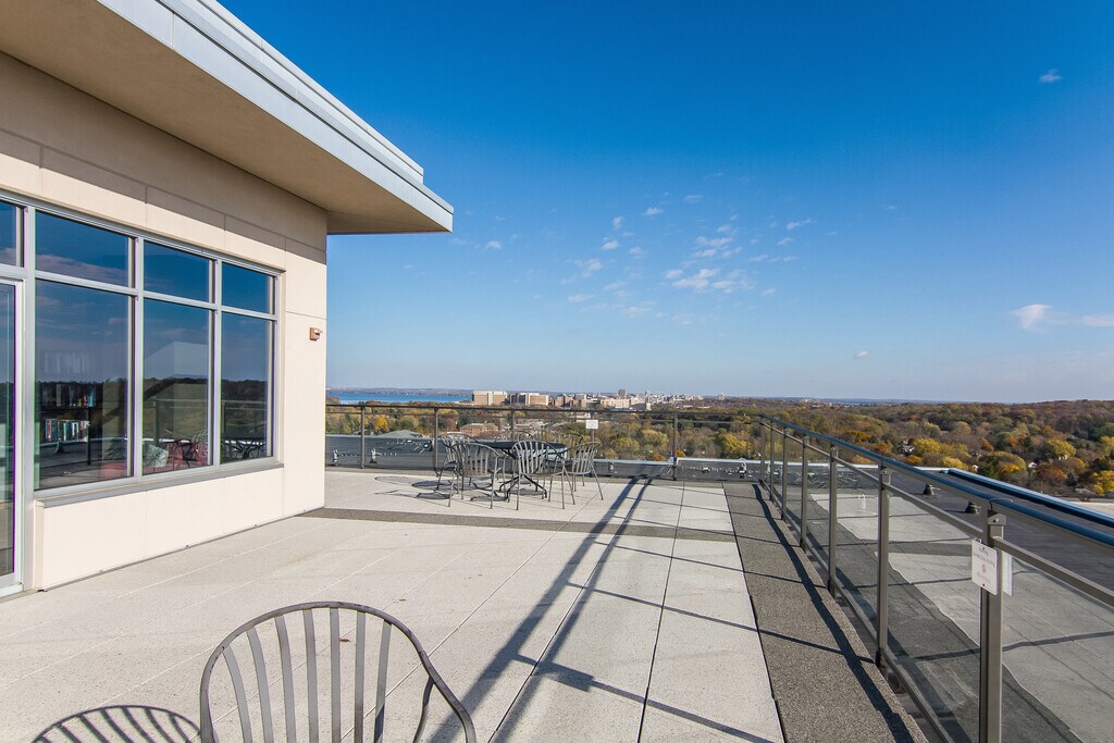 Madtown Properties has several condos for rent within the luxury Weston Place condominiums, 625 N Segoe Rd, ranging from 2 bed with den/office, 2 baths, 1,744 sq ft (1107) to 1 bed with den/office, 2 bath condos (603, 504, 404) at 1,444-1,473 sq ft. These spacious condos offer an ultra-convenient location walkable to Hilldale dining and retail options as well as Madison Yards which continues to add amenities, including Whole Foods. Building common areas include a grand lobby with lounge, a 12th floor lounge, fitness room and rooftop terrace. Rental rates include one garage parking stall. Additional parking and garage storage is available for rent if needed.
