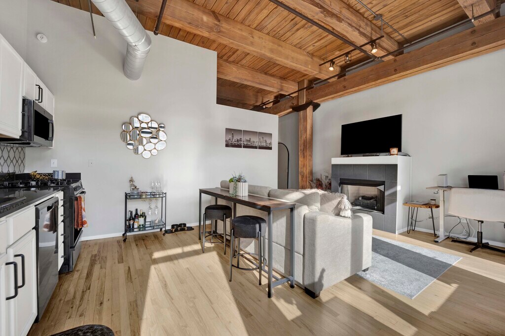 Beautifully updated 1-bedroom, 1-bathroom loft in a boutique, professionally managed elevator building in the heart of the West Loop. This bright and open home features soaring timber ceilings, exposed brick walls, and oversized industrial-style windows that fill the space with natural light. The open-concept floor plan includes a spacious living area with a gas fireplace, ideal for both relaxing and entertaining. Unit features include hardwood floors throughout, in-unit laundry, and ample storage space. Building amenities include a bike room and secure garage parking included in the price. Enjoy living steps from Greektown, Randolph Street's renowned restaurant row, and easy access to the Loop, public transit, and expressways. Also available furnished. Please inquire.
