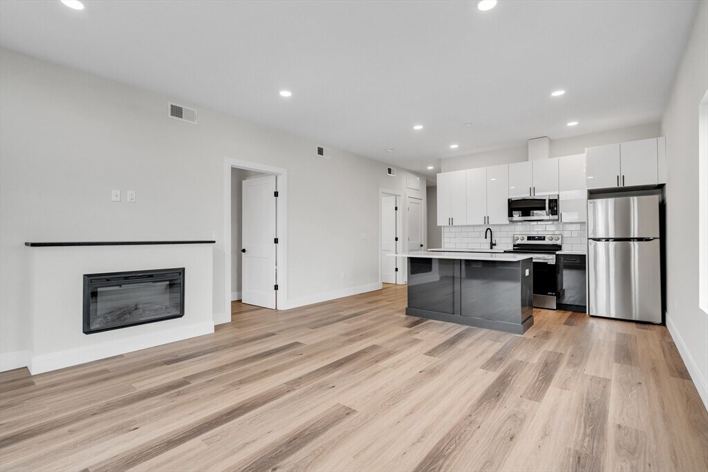 Located next to Roslindale Village Train Station. 63 Belgrade is a brand-new elevator building with garage parking. This unit is a 1 bed plus den/office and 2 bathrooms. Unit features an outdoor deck/ patio and 2 full baths. Modern finishes with open concept layout. Kitchens feature European style cabinetry,quartz counters and stainless steel appliances. Designer tiled baths w/ glass shower enclosures. In unit laundry,large closets,Central Air and hybrid hot water heater. Pets ok with restrictions. Lots of street parking available.Photos/videos may be of a similar unit.Underground parking available for an additional $200 MLS# 73488967
